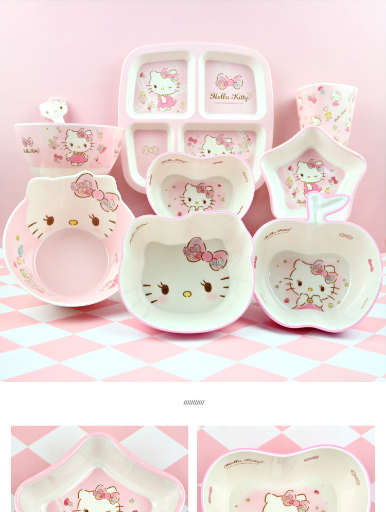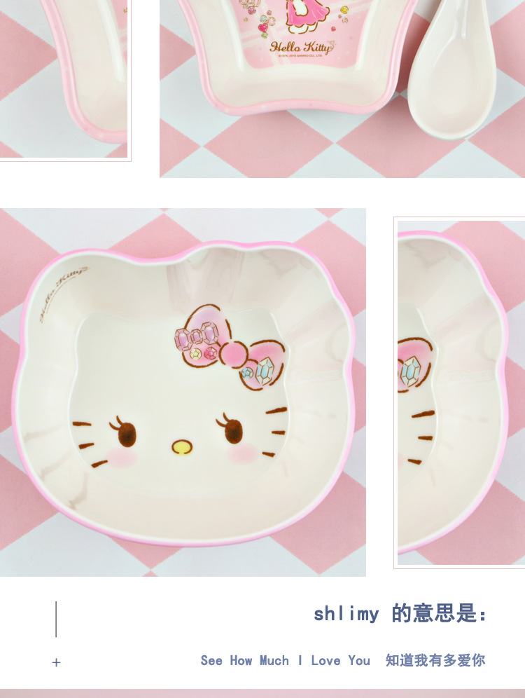 정품 우허 어린이 그릇 산리오 헬로키티 식기 귀여운 만화 아기 이유식 그릇 예쁜 식사 그릇