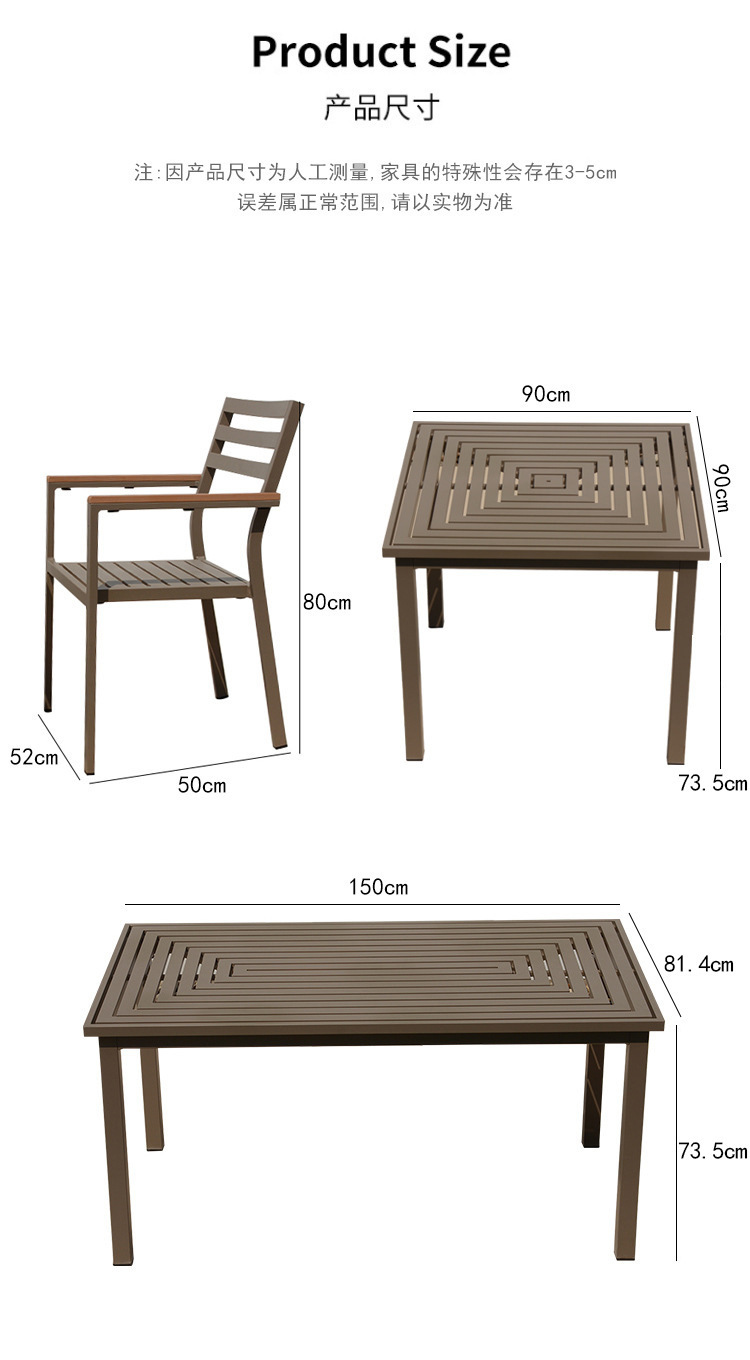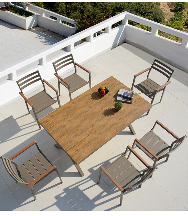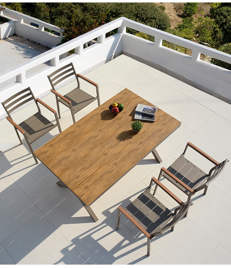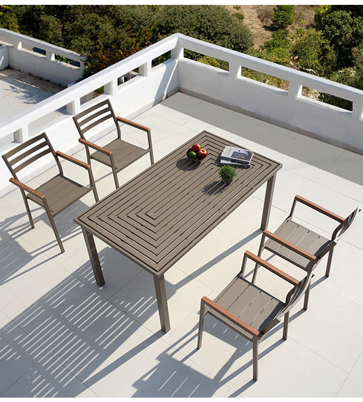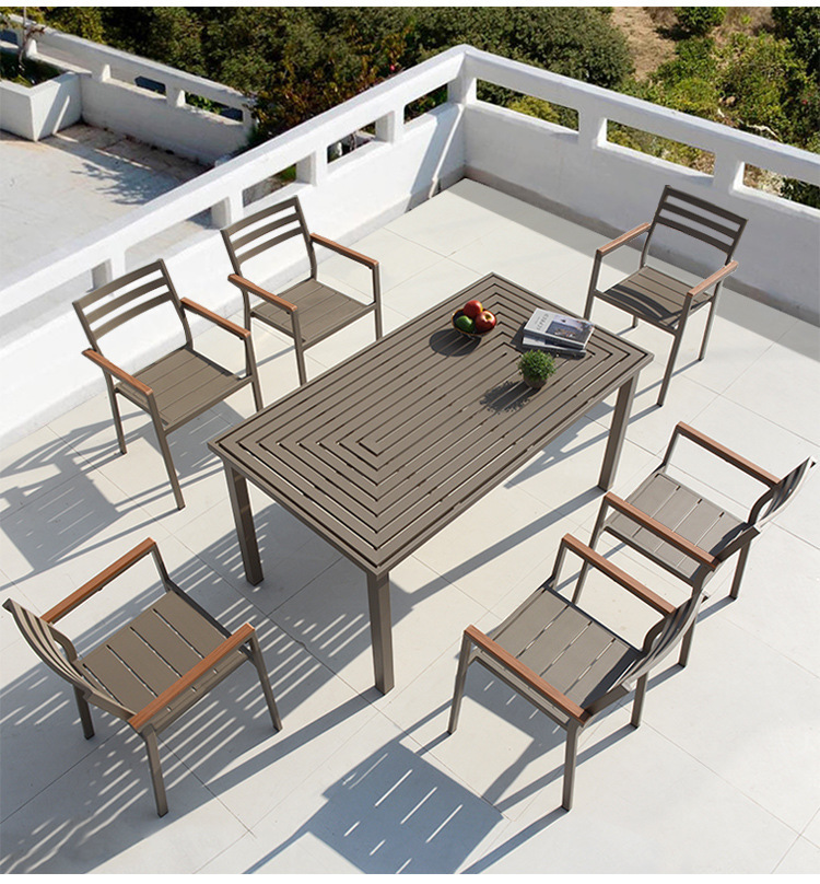 야외 알루미늄 합금 식탁 및 의자 세트, 야외 빌라 마당, 야외 빌라 호텔 발코니 정원 레저 테이블 및 의자 세트