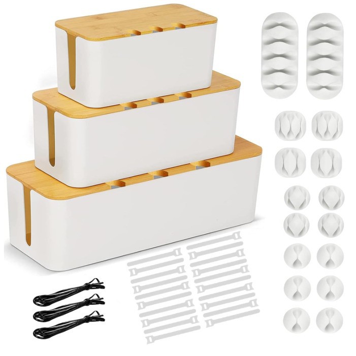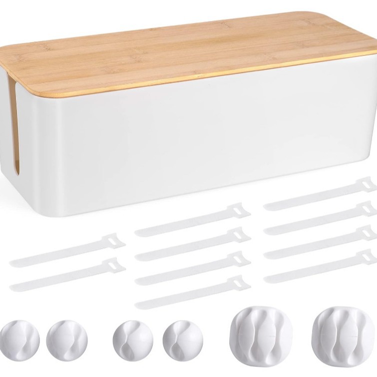 크리 에이 티브 간단한 데스크탑 와이어 박스 대나무 나무 커버 와이어 박스 패치 보드 보관 상자 전원 코드 충전기 보관함