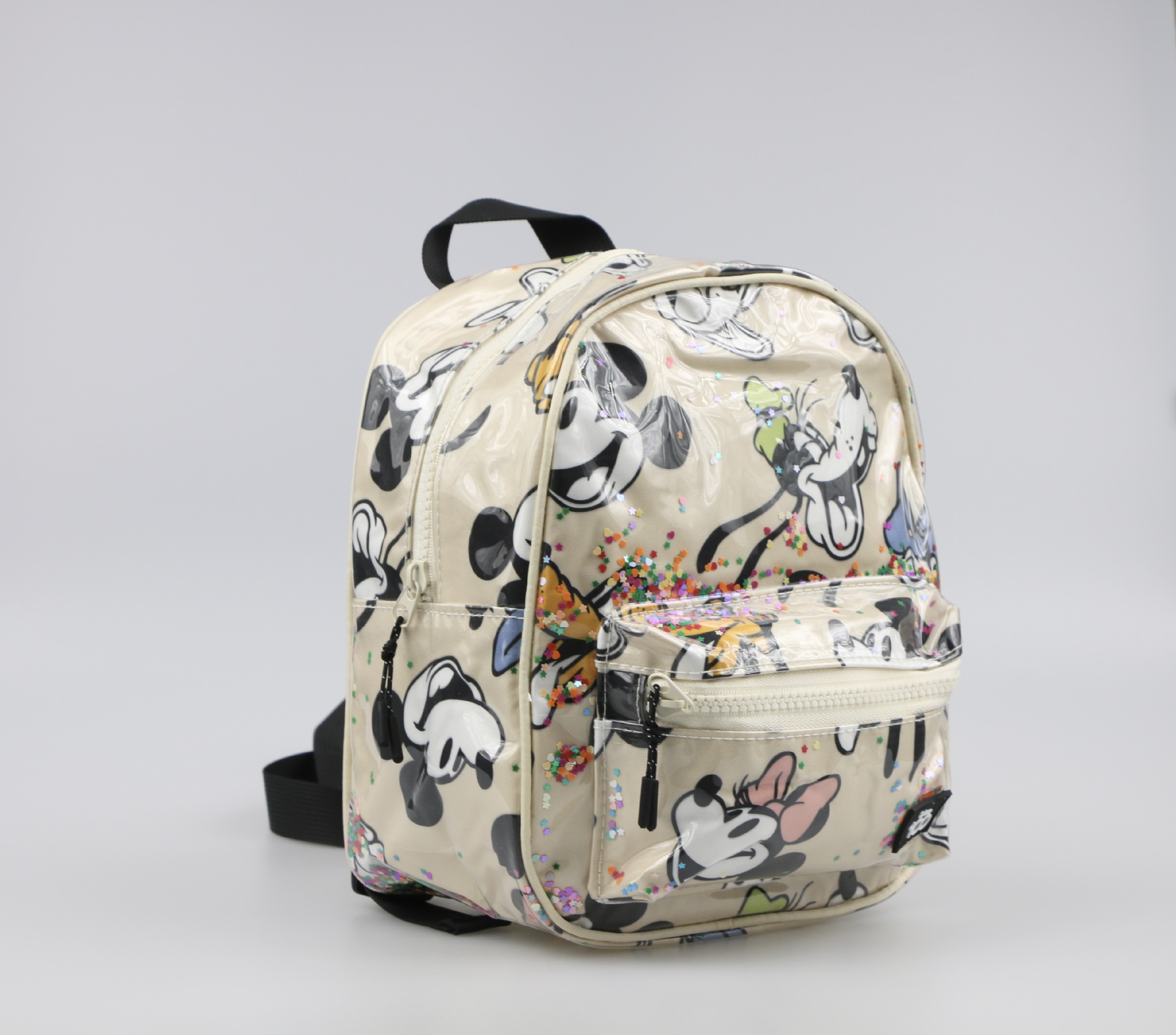 어린이를 위한 새로운 살구색 플루토 스팽글 프린트 백팩스토어 가기