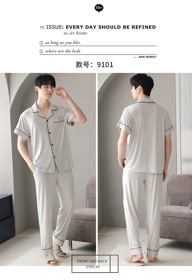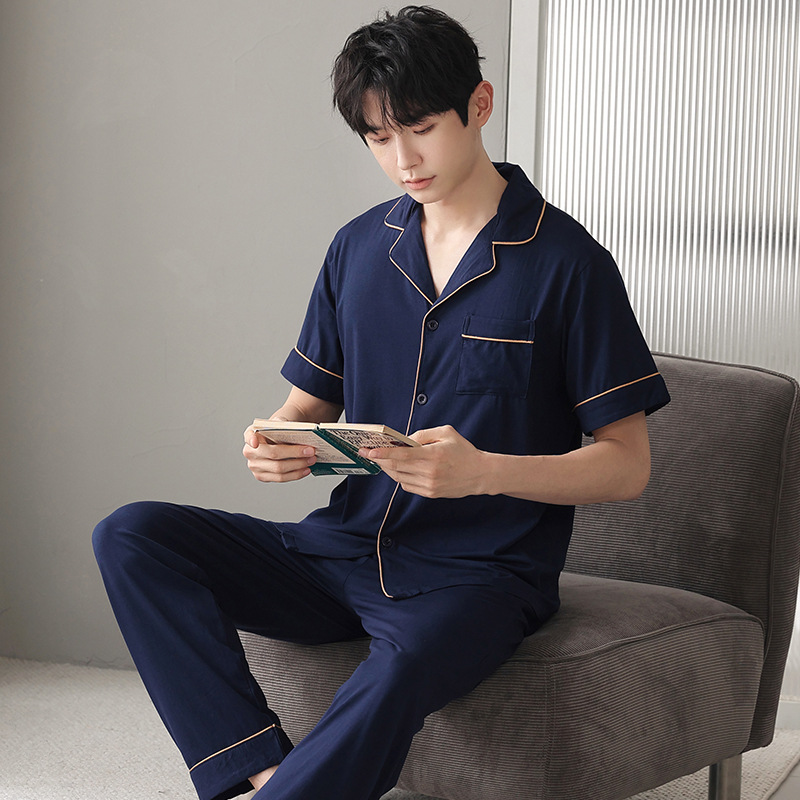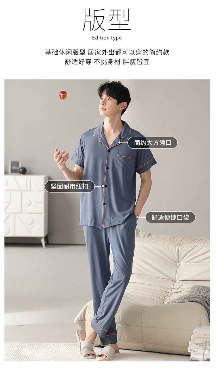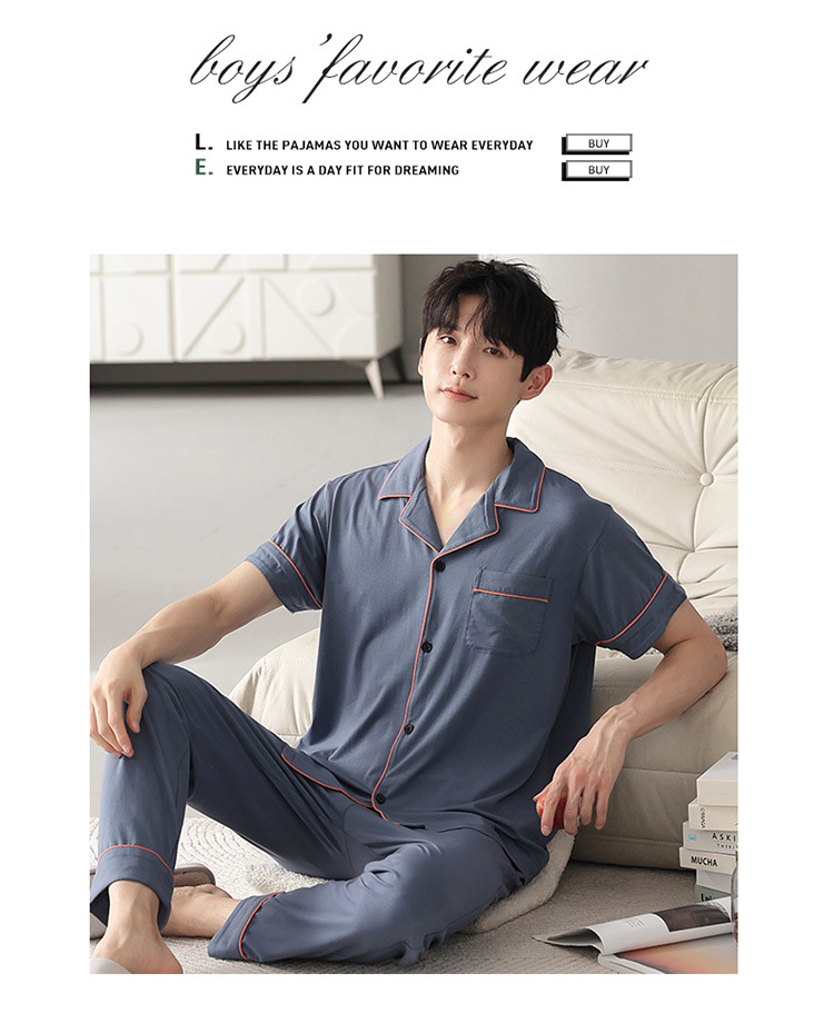 남자의 잠옷 남자의 여름 모달 면 바지 반팔 플러스 사이즈 잠옷 바지 얇은 카디건 가정 옷 세트 캐주얼스토어 가기