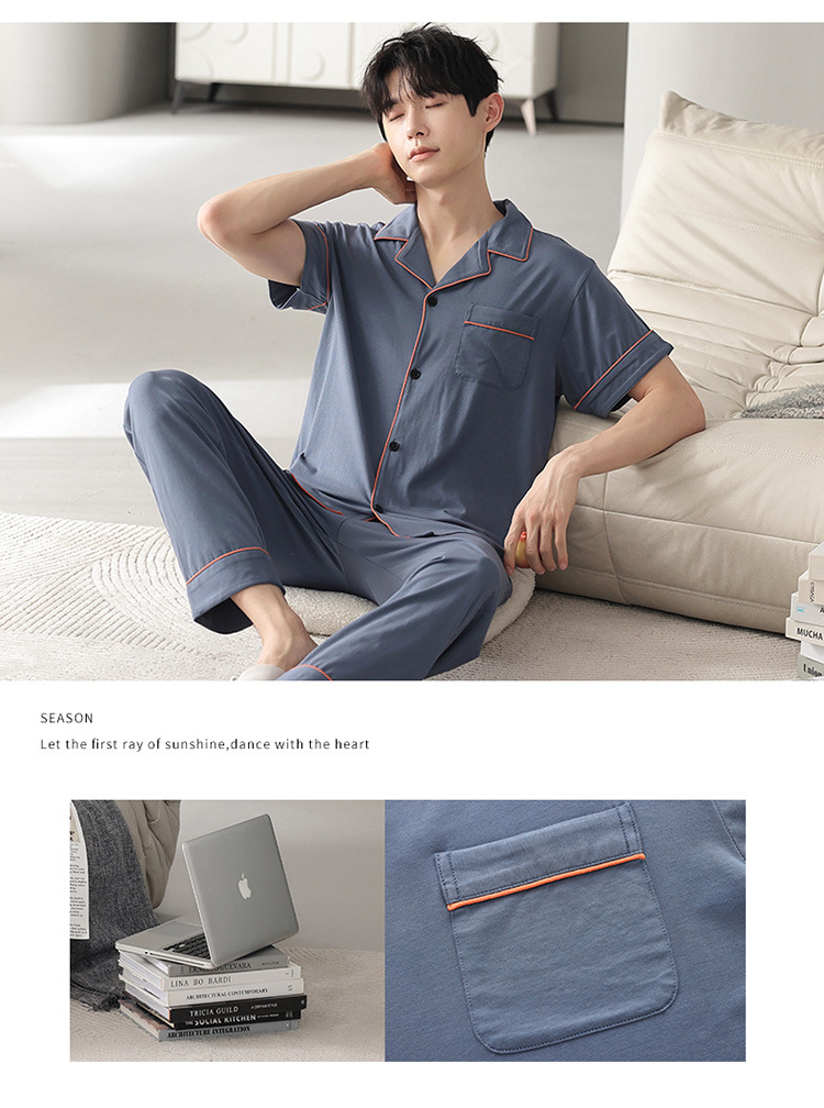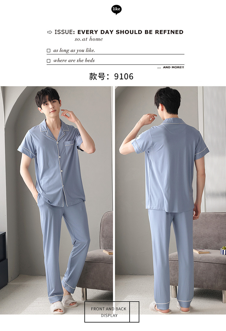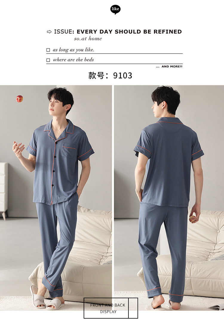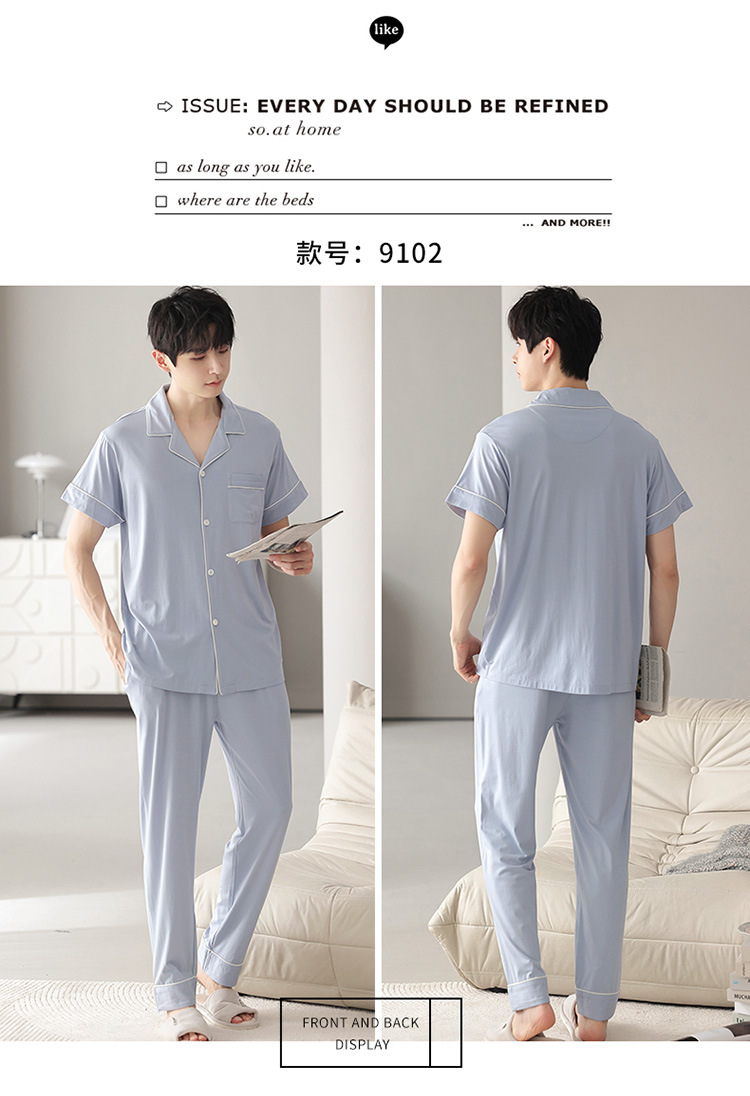남자의 잠옷 남자의 여름 모달 면 바지 반팔 플러스 사이즈 잠옷 바지 얇은 카디건 가정 옷 세트 캐주얼스토어 가기