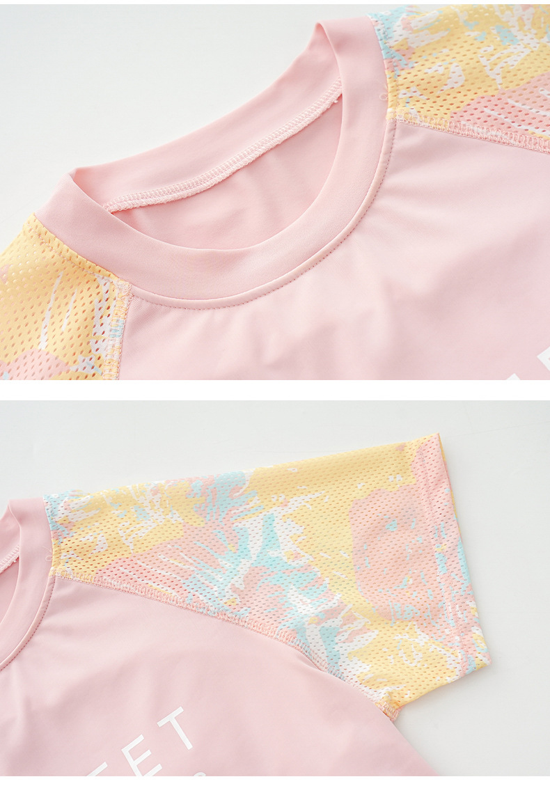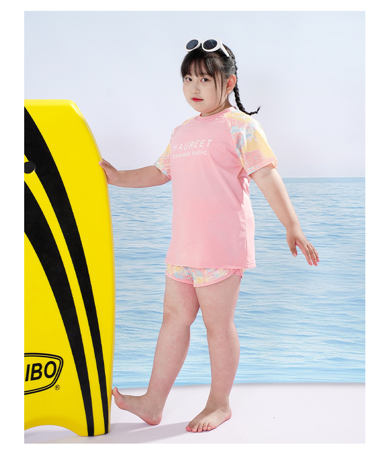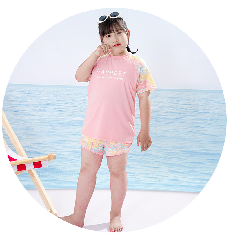 뚱뚱한 아이 수영복 소녀 중간 및 큰 아이 아이들 소녀 분할 유형 학생 고등학교 학생 수영복 핑크 자외선 차단제 세트