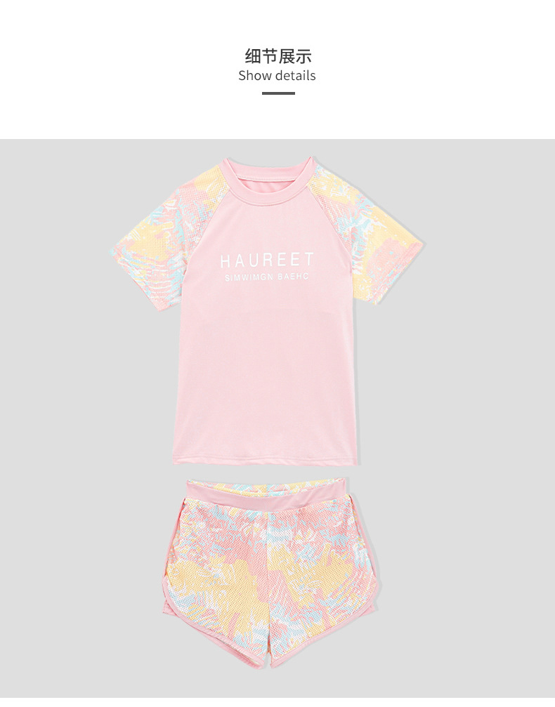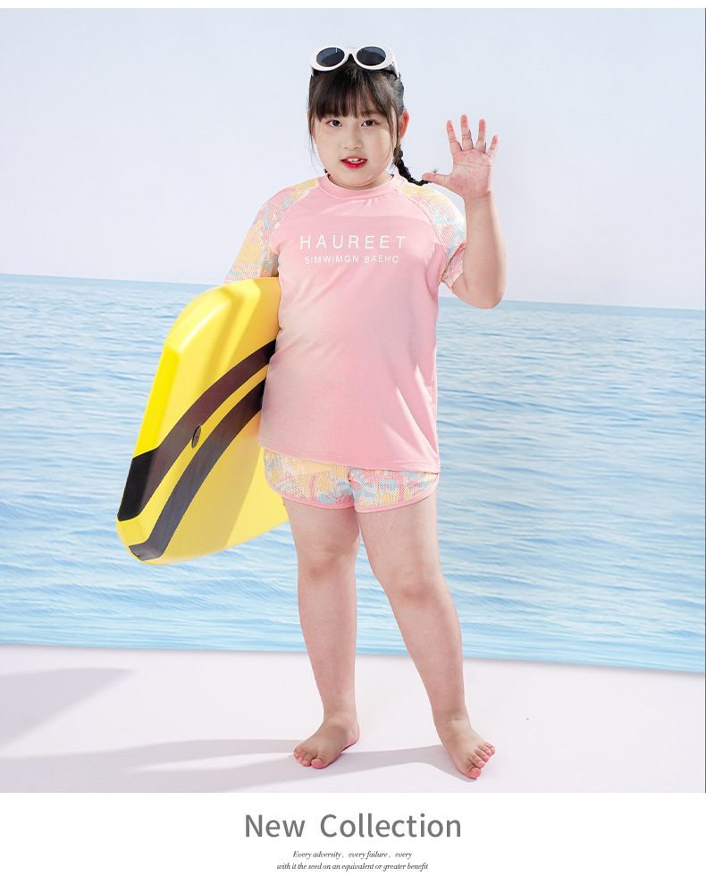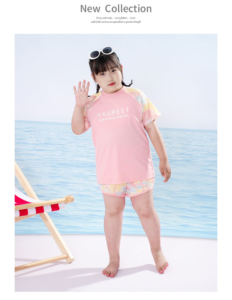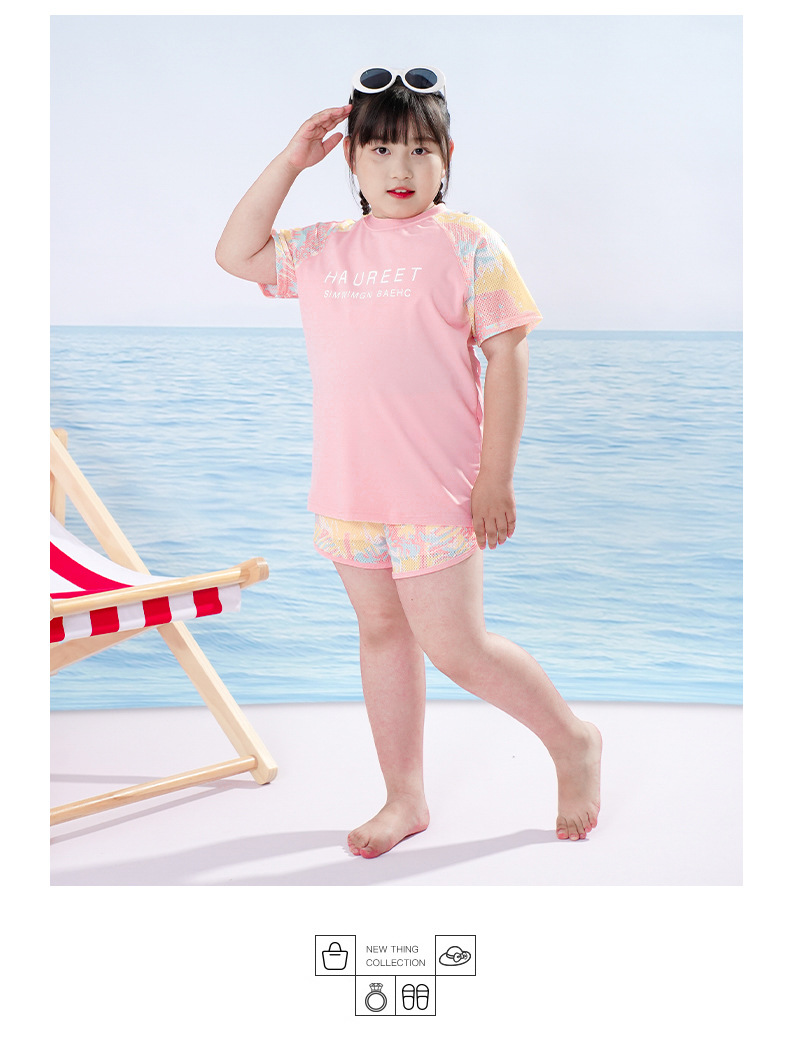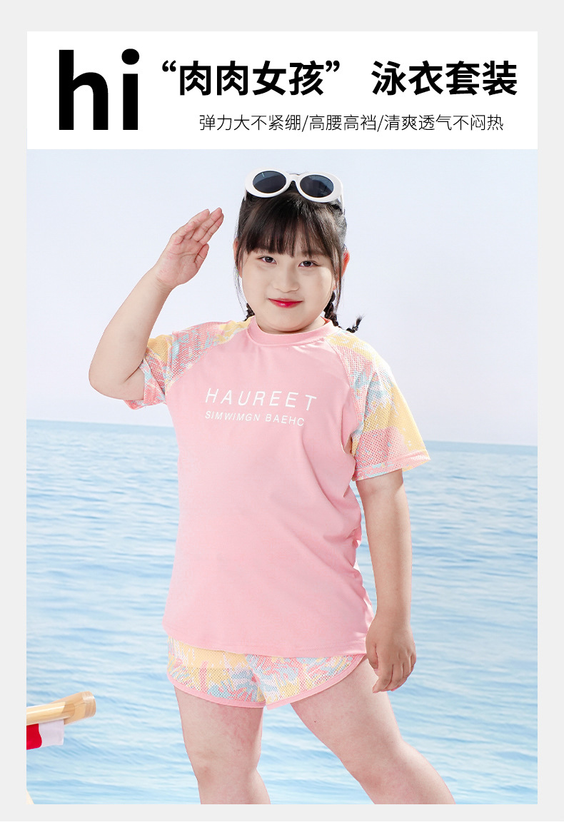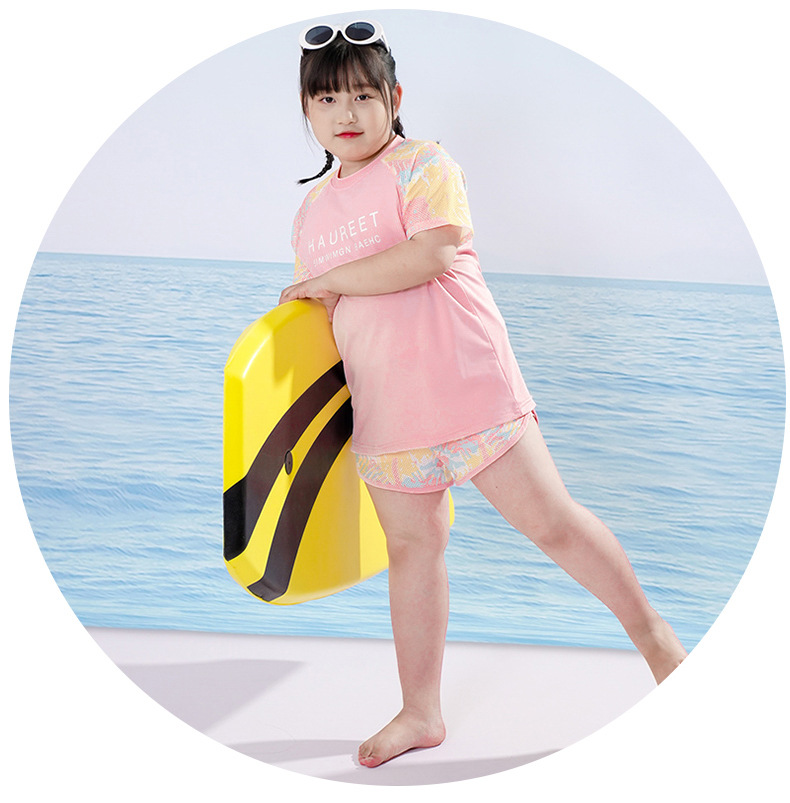 뚱뚱한 아이 수영복 소녀 중간 및 큰 아이 아이들 소녀 분할 유형 학생 고등학교 학생 수영복 핑크 자외선 차단제 세트스토어 가기