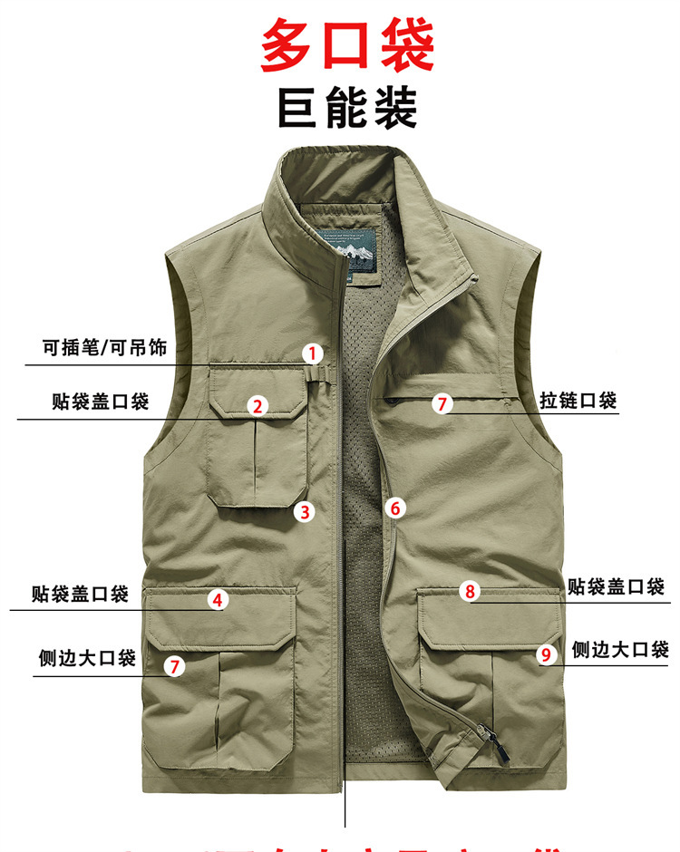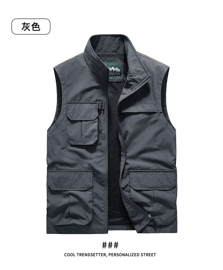 조끼 남자의 멀티 포켓 캐주얼 조끼 사진 광고 셔츠 자원 봉사 인쇄 야외 스포츠 등산 낚시 배치