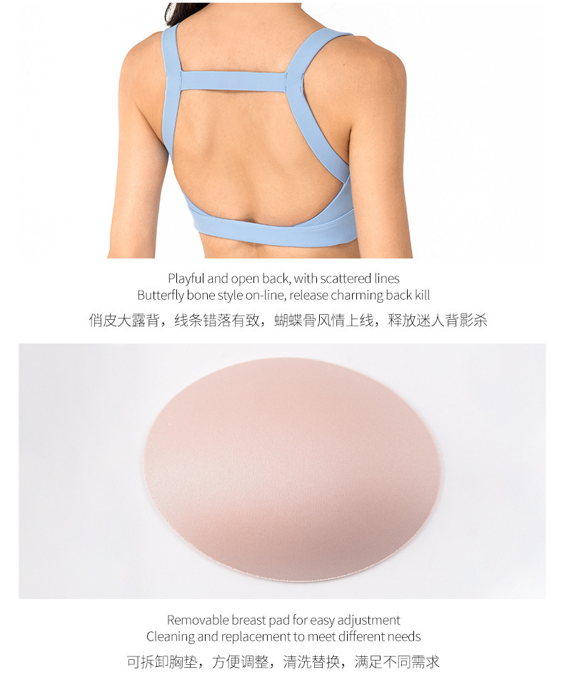 [엄선] 여성용 스포츠 브라, 충격 방지, 러닝, 피트니스, 아름다운 등 라인, 탈부착 가능한 패드, 조끼형 요가복 브라
