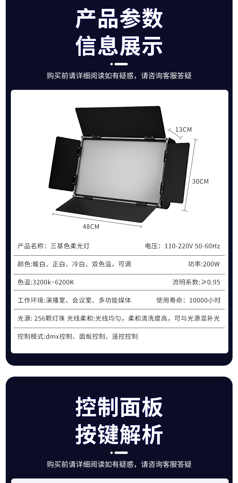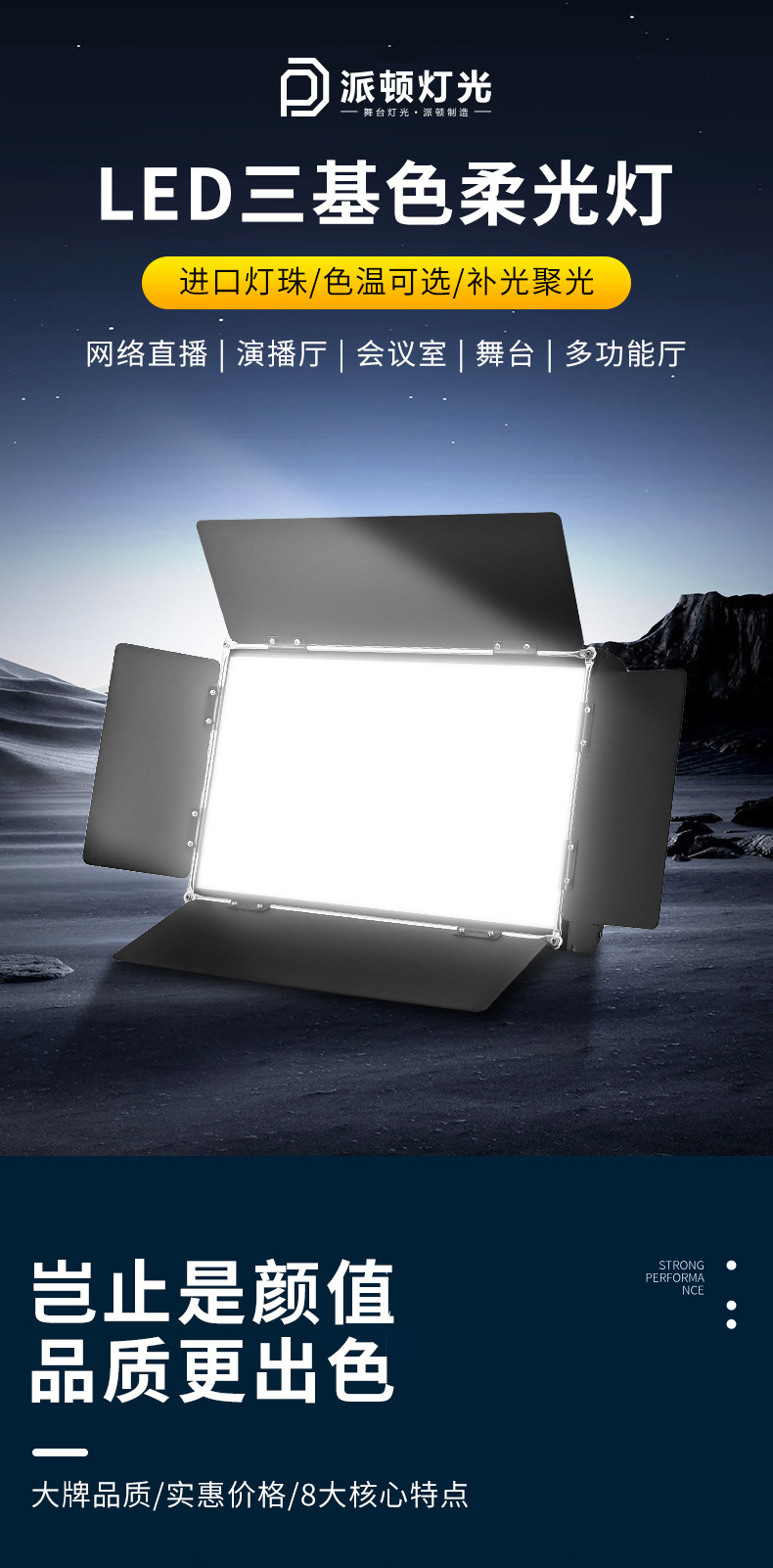 파이톤 삼색 조명 이중색상 영화 조명 소프트 라이트 라이브 방송 조명 회의실 평면 조명