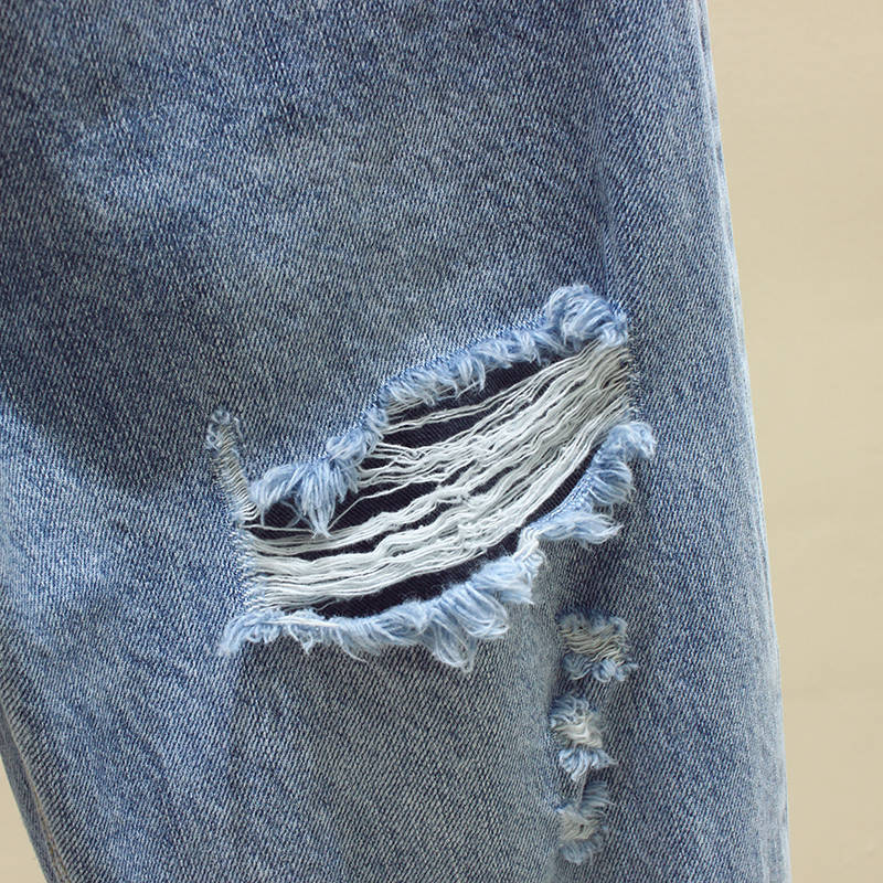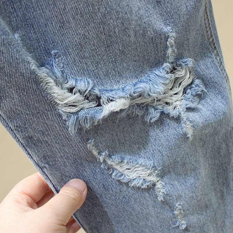 라이트 컬러 청바지 여성용 찢어진 느슨한 스트레이트 팬츠 봄과 여름 새로운 하이 웨이스트 하렘 팬츠 슬리밍 크롭 팬츠스토어 가기