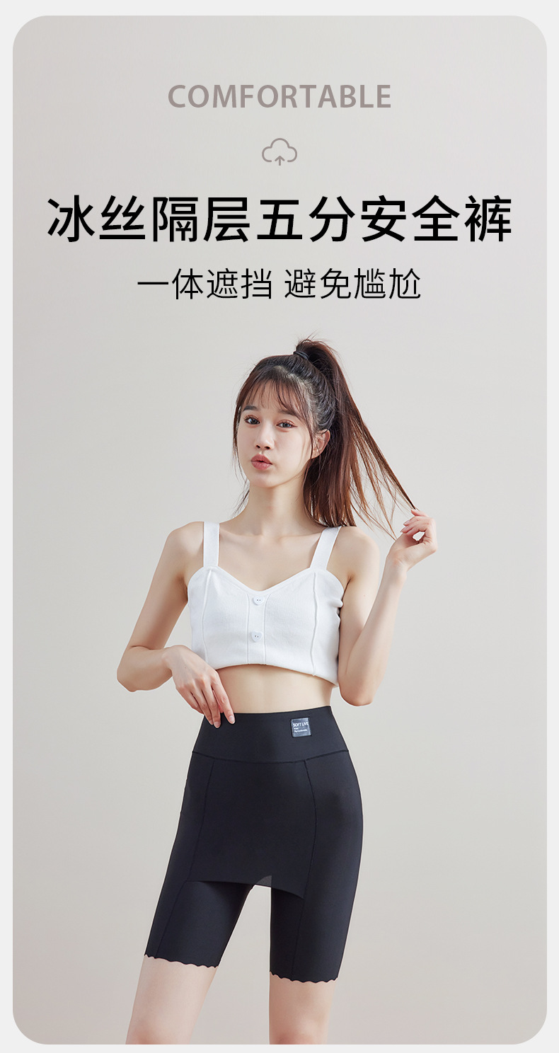 하이웨이스트 8cm 뱃살 보정 안전팬츠 여성용 아이스 실크 무봉제 웨이브 엣지 노출방지 레깅스 공장 직배송