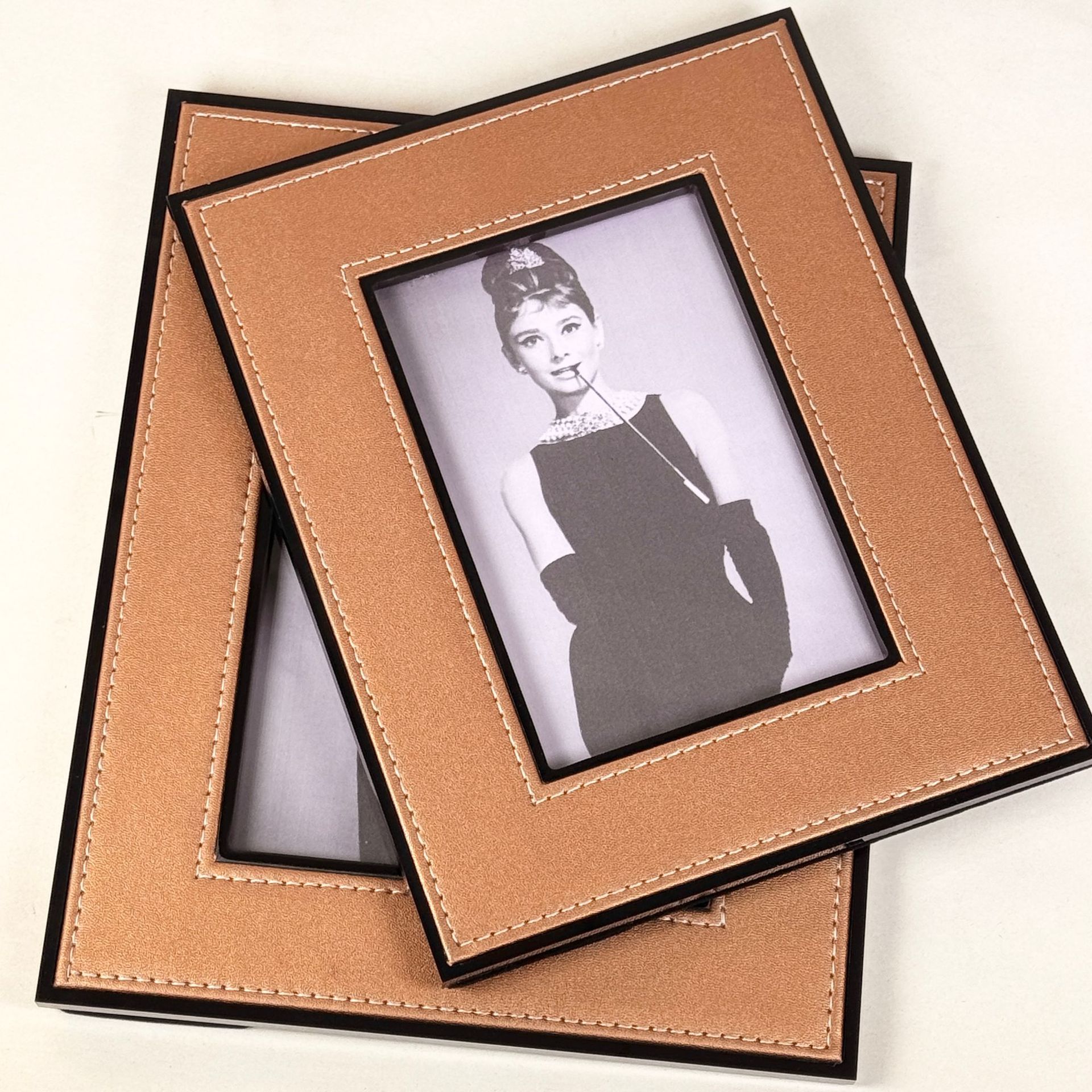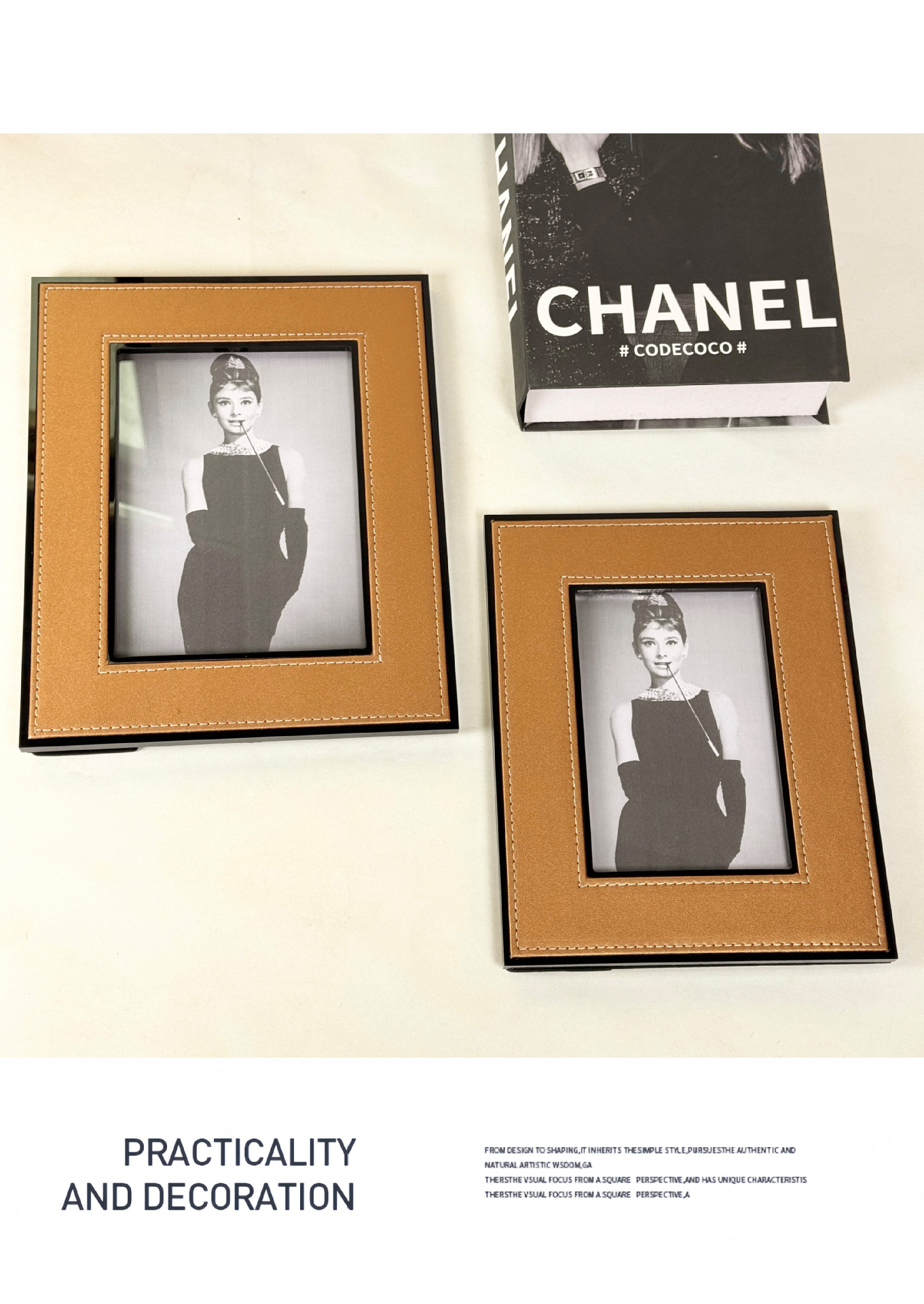 간단한 현대 오렌지 고급 가죽 장식 라인 사진 프레임 67 인치 침실 연구 데스크탑 장식 홈 장식