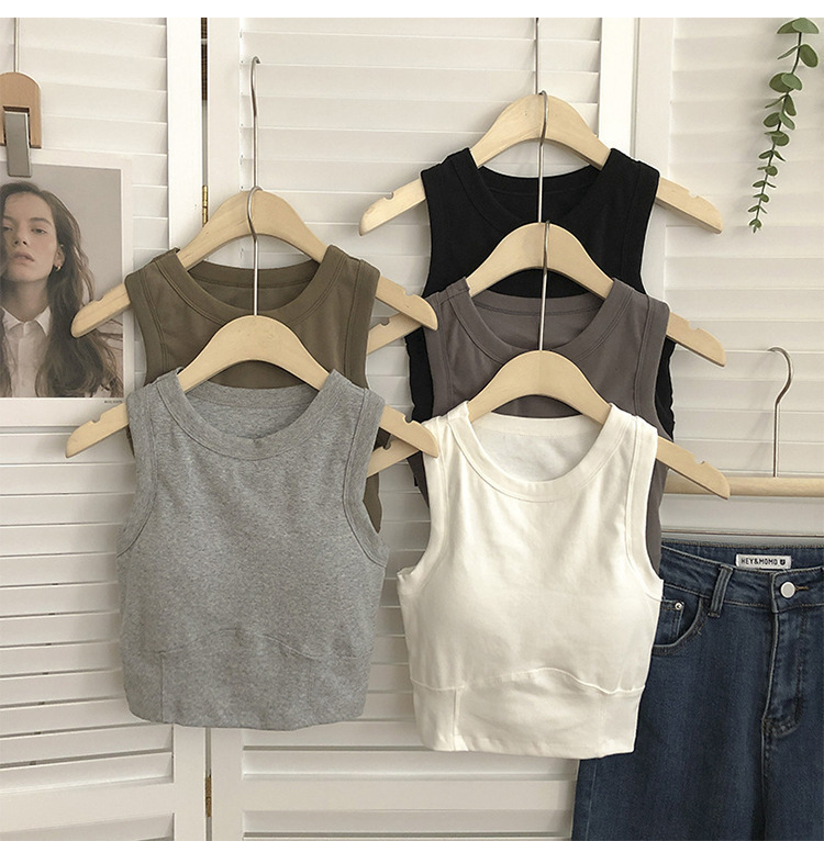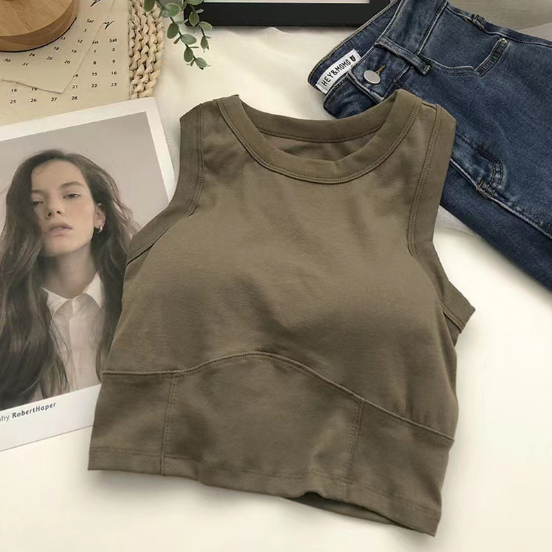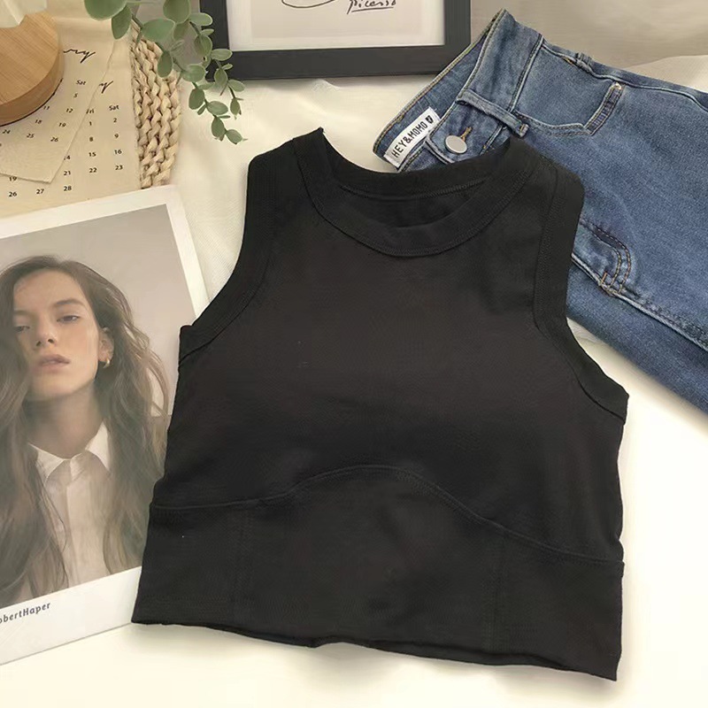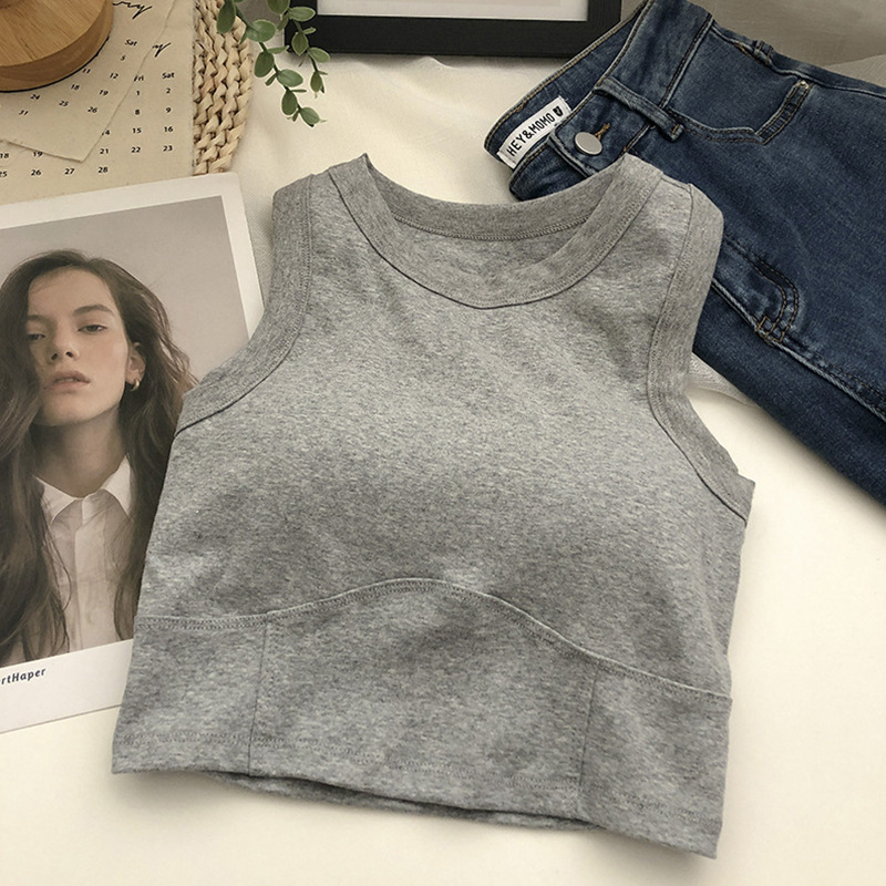 여름 짧은 I 자형 조끼 여성용 아름다운 백 원피스 가슴 패드 내부 슬림핏 랩 짧은 배꼽 노출 민소매 탑스토어 가기