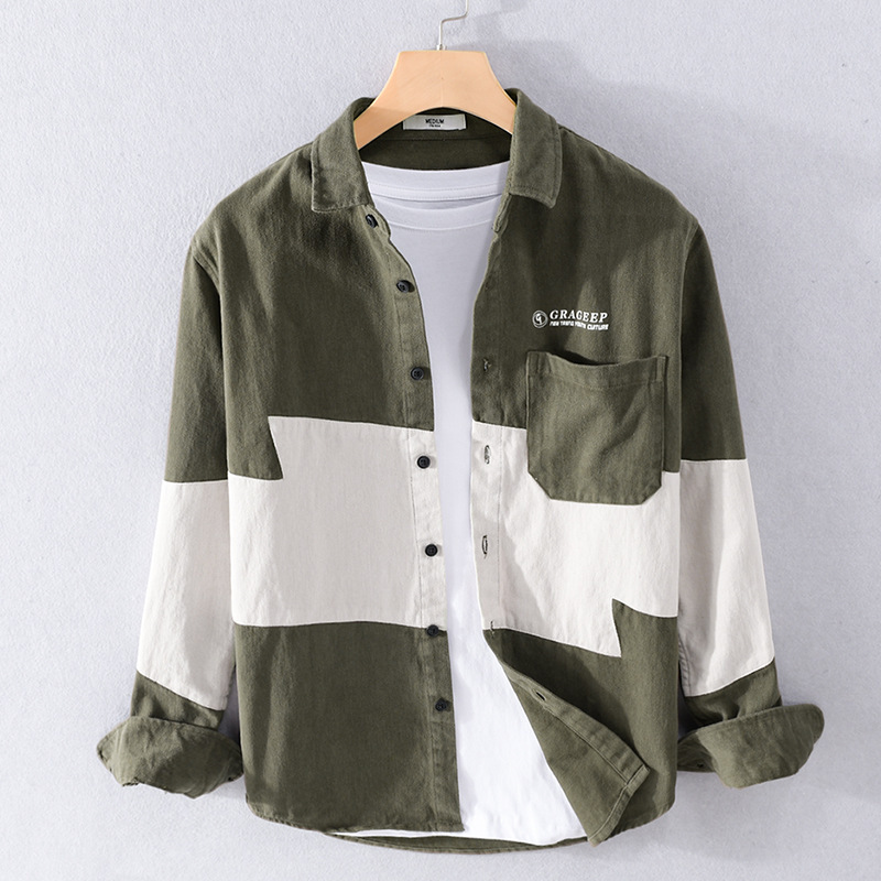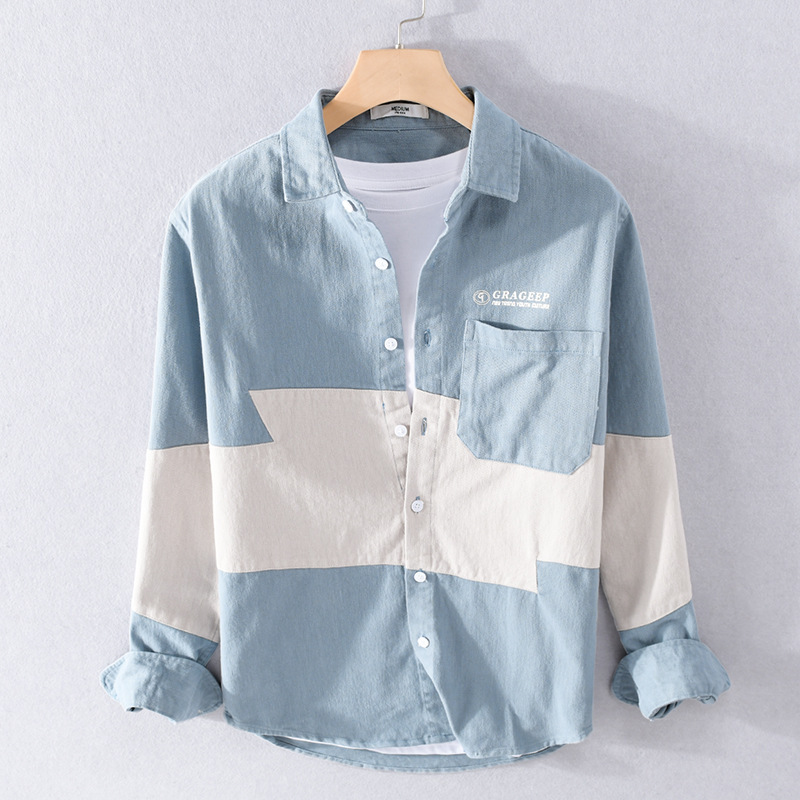 봄과 가을 긴 소매 셔츠 남자의 서양 스타일 유행 느슨한 순면 남자의 바느질 작업복 셔츠 청소년 복고풍 남자의 탑