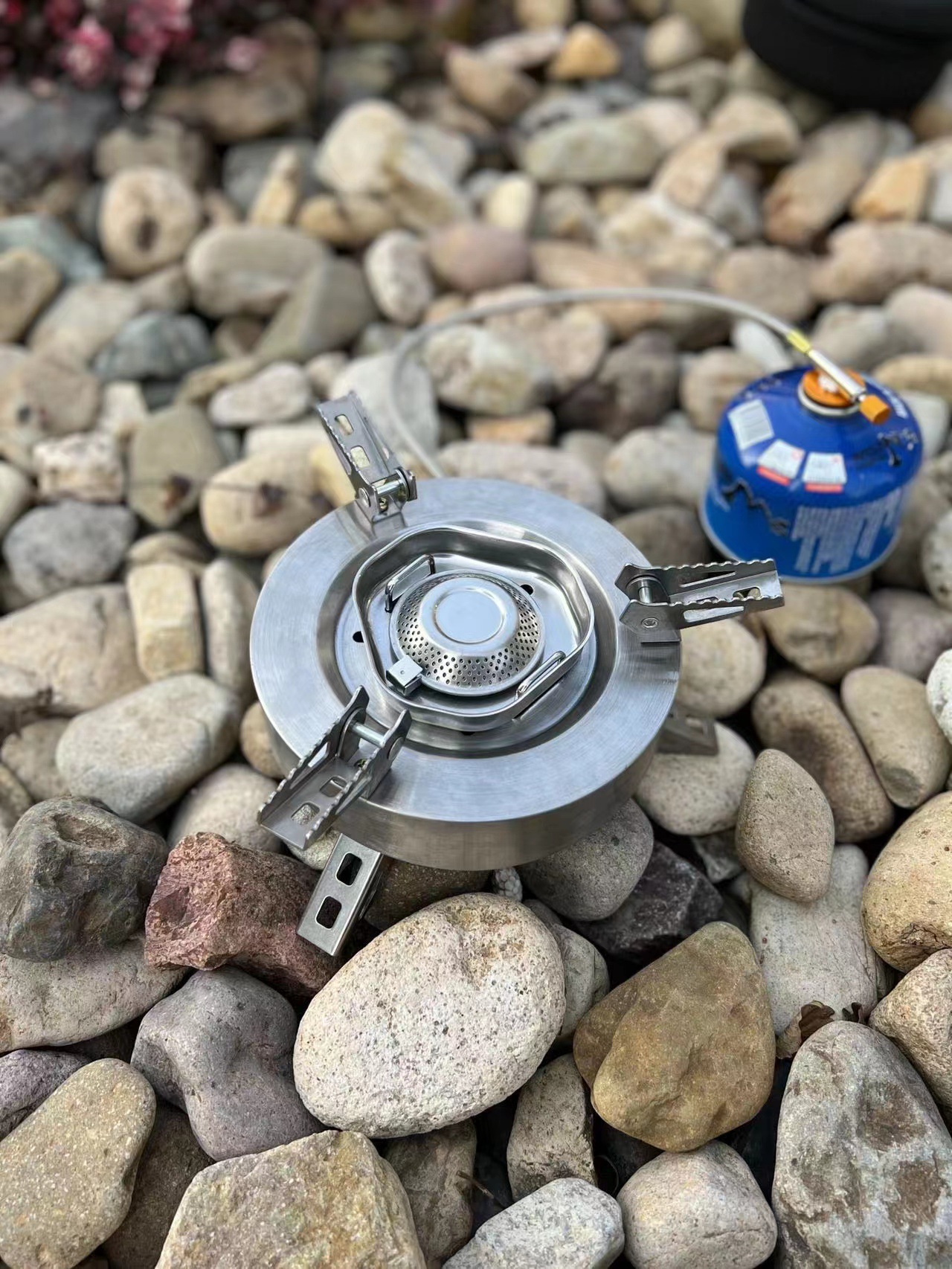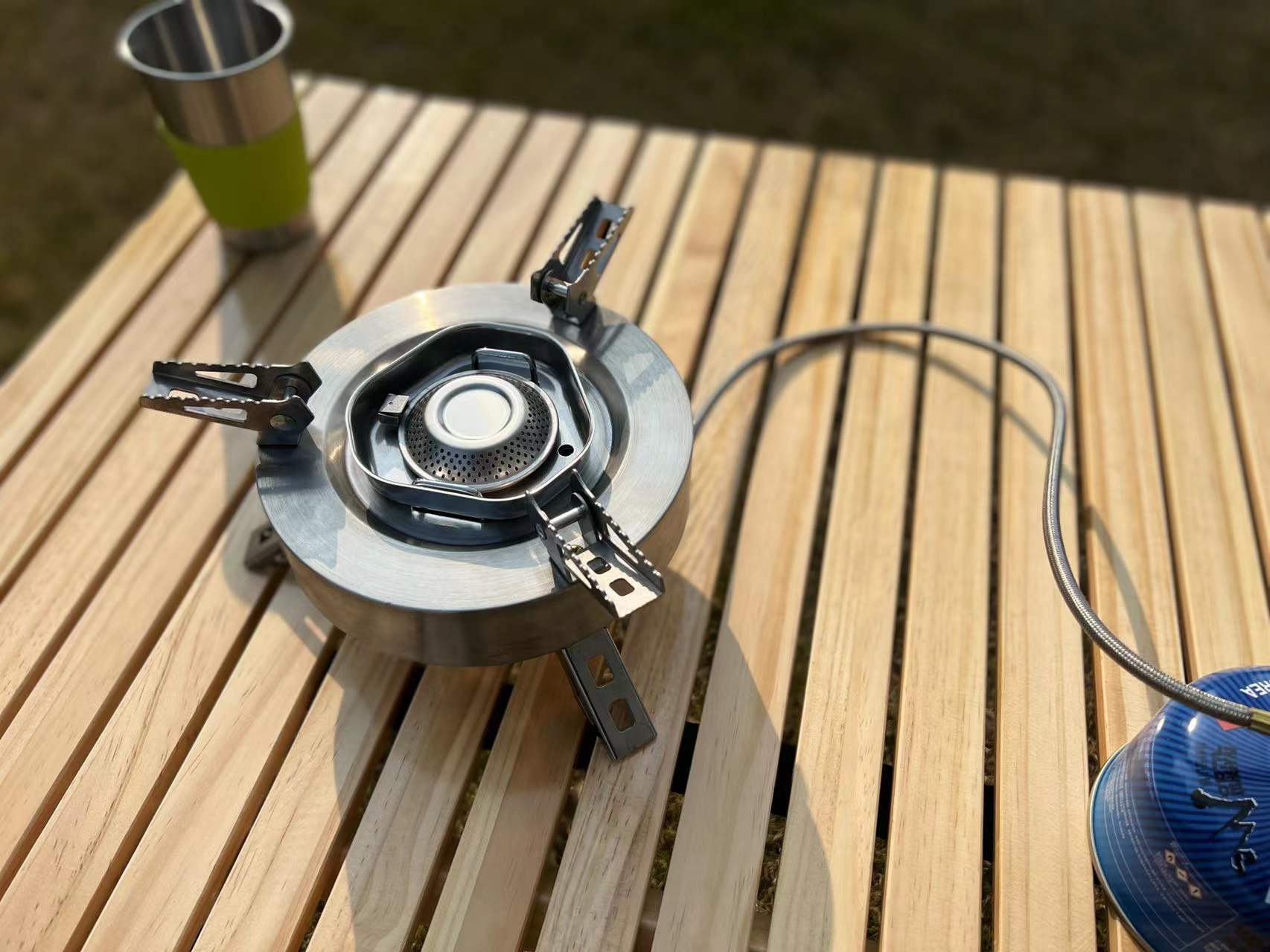 새로운 야외 피크닉 분할 가스 스토브 스테인레스 스틸 거꾸로 치열한 스토브 가스 스토브 야외 장비 도매스토어 가기