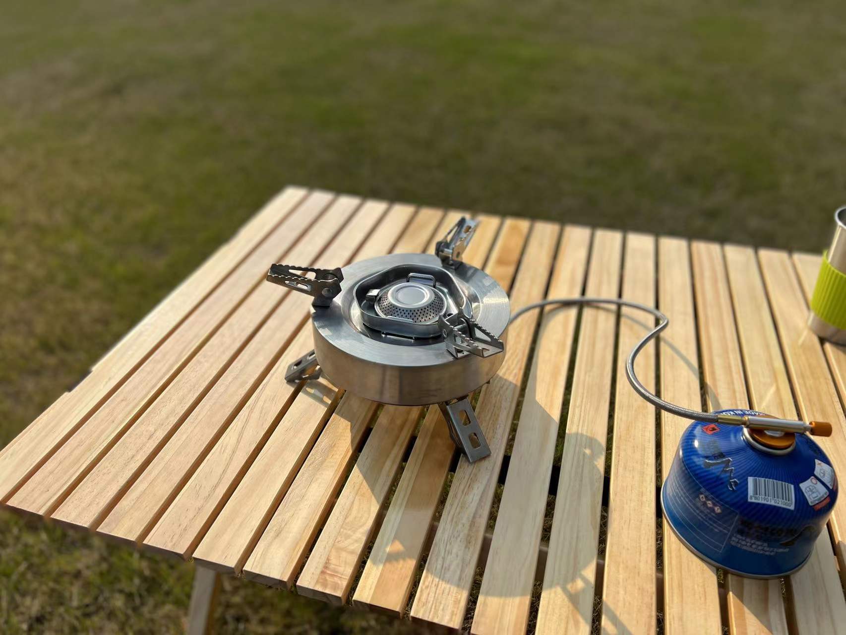새로운 야외 피크닉 분할 가스 스토브 스테인레스 스틸 거꾸로 치열한 스토브 가스 스토브 야외 장비 도매