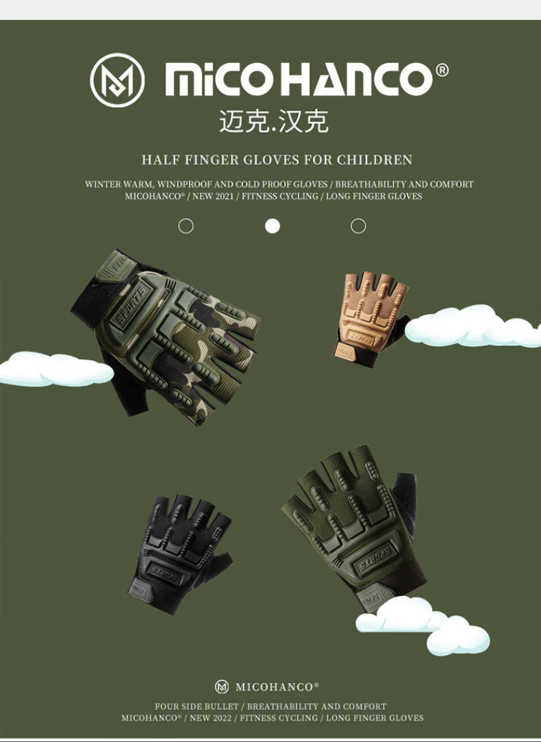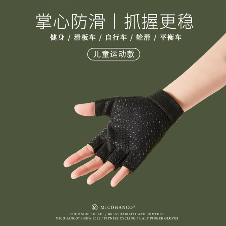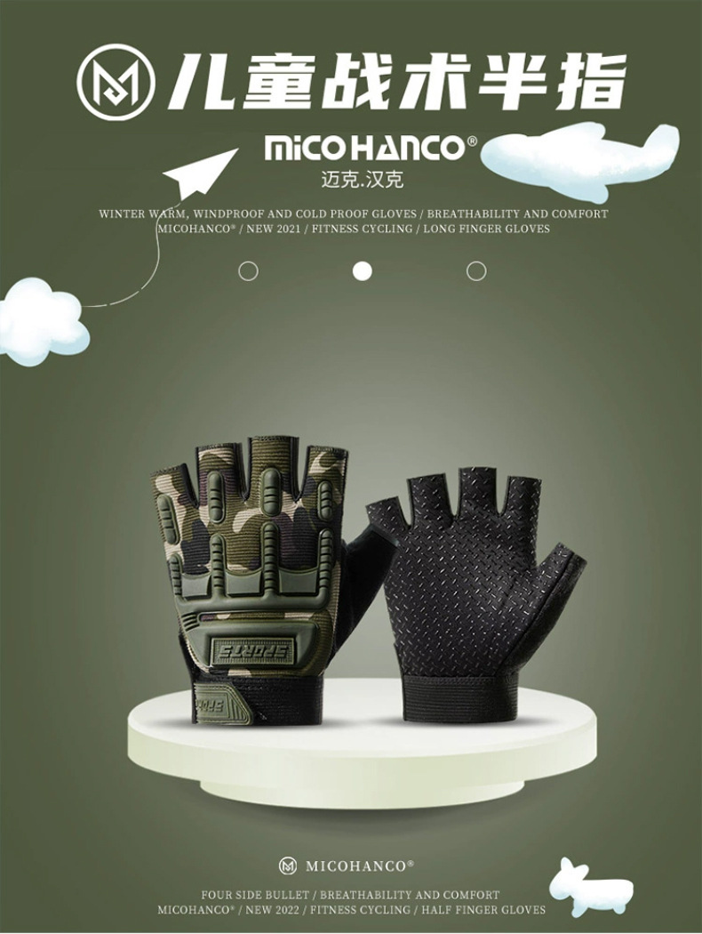 어린이 전술 장갑 소년 손가락 노출 야외 반 손가락 장갑 미끄럼 방지 스포츠 휘트니스 사이클링 태양 보호 군용 팬 훈련