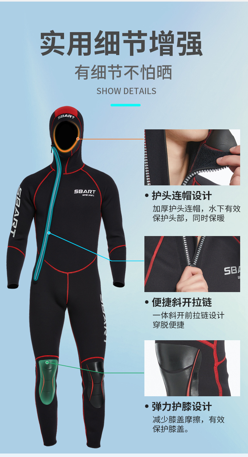 Shabart 1.5mm 다이빙 세트 남자의 두꺼운 따뜻한 원피스 수영복 긴 소매 자외선 차단제 서핑 세트 스노클링 해파리 세트스토어 가기