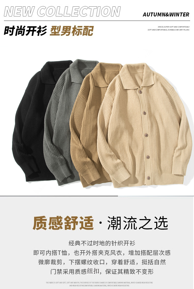 2025 가을 겨울 남성용 카디건 스웨터 한국 스타일 트렌디한 라펠 니트웨어 다용도 캐주얼 단색 자켓 슬림핏스토어 가기