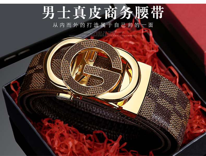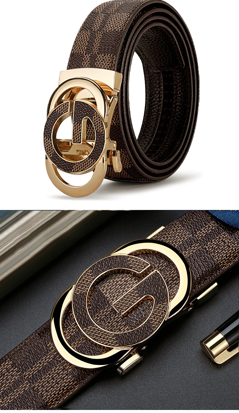 [1 층 소가죽] 벨트 남성 자동 버클 가죽 벨트 남성용 젊은 남성 다목적 하이 엔드 패션 바지 벨트 남성