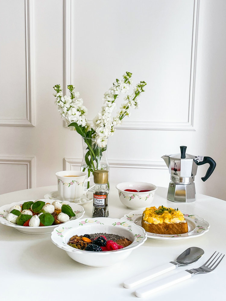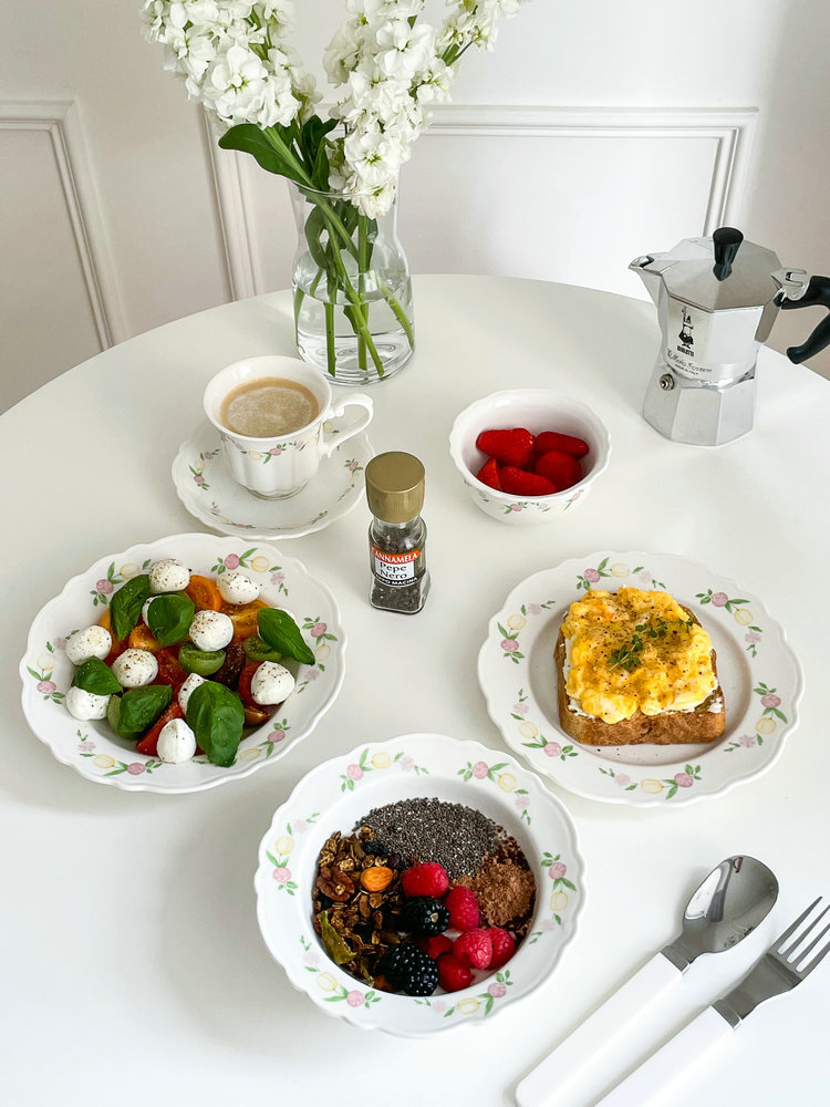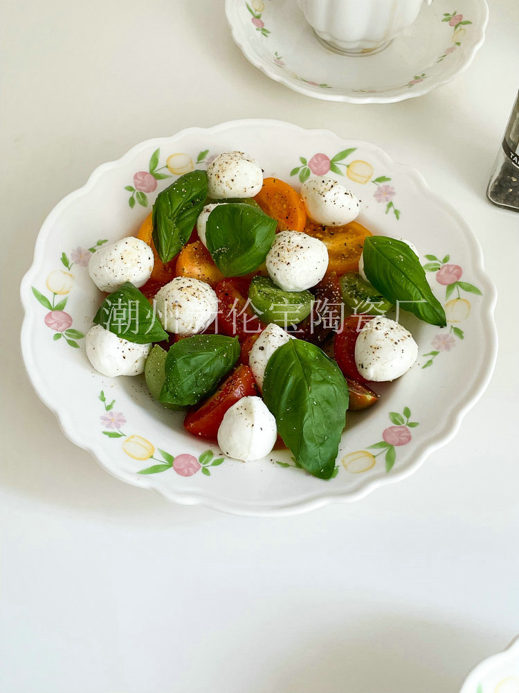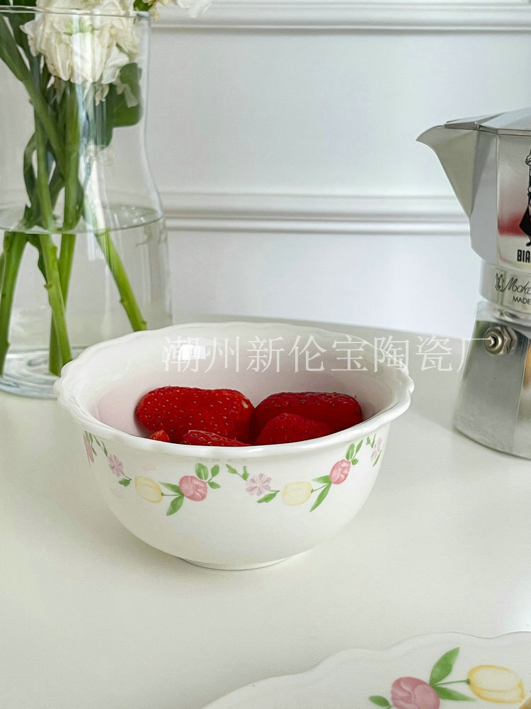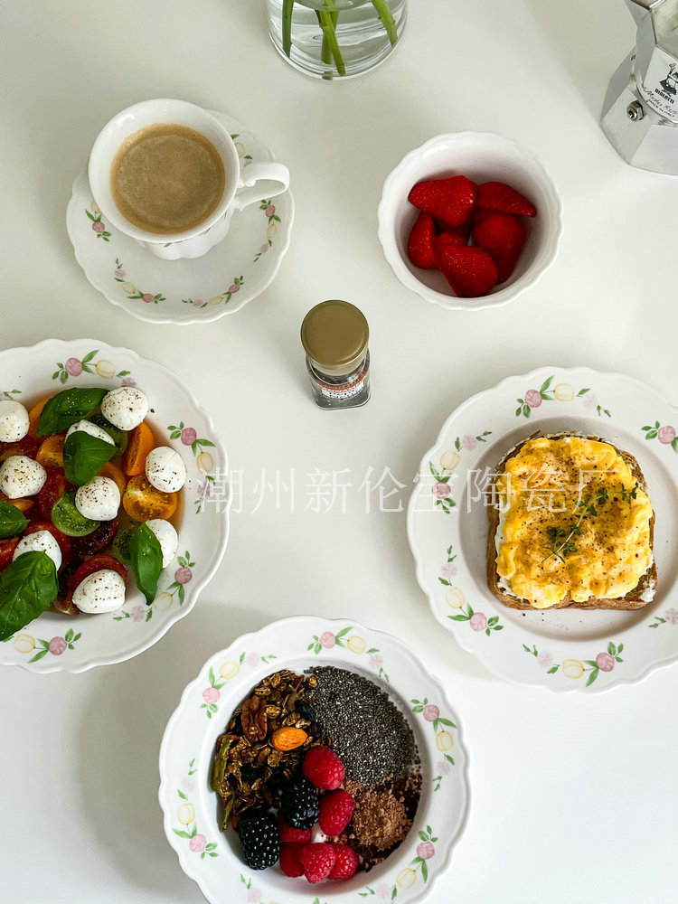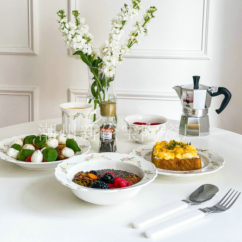 한국식 신선한 목가적 인 스타일의 세라믹 식기 고급 서양식 요구르트 샐러드 그릇 밥 그릇 아침 식사 파스타 접시