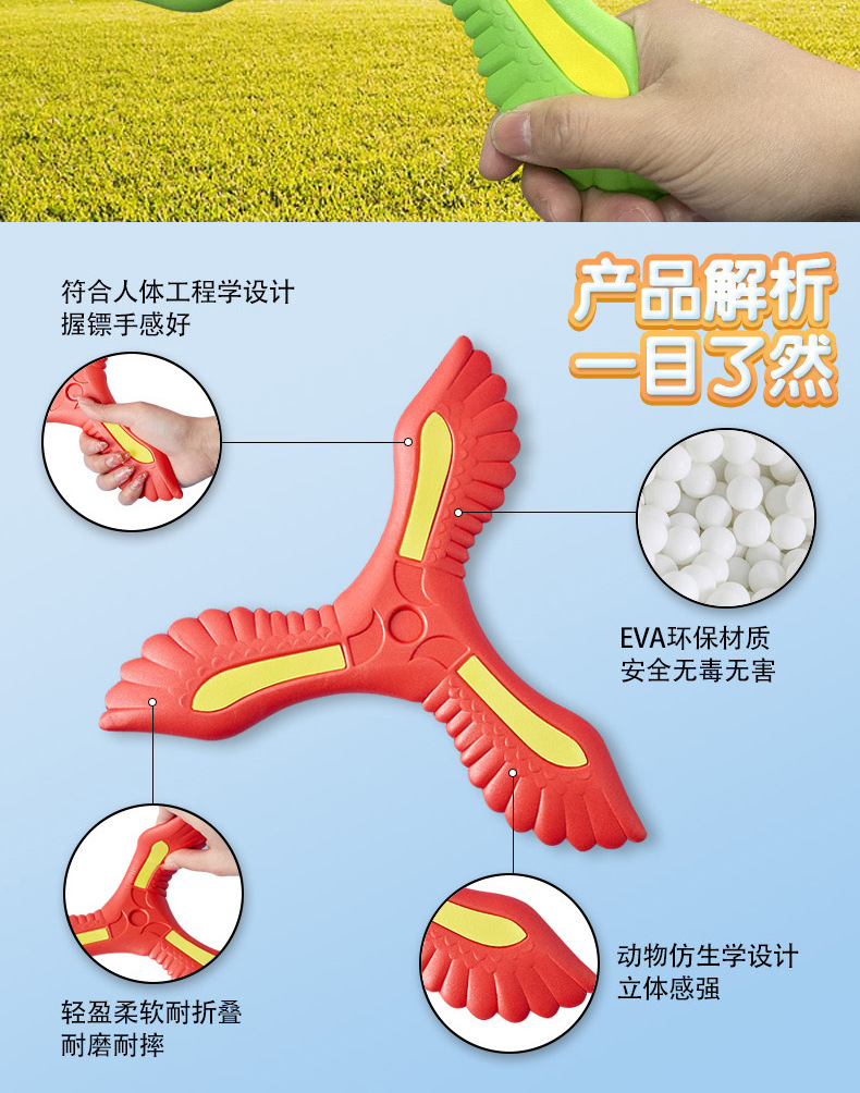 부메랑 부메랑 부메랑 소년 광장 부드러운 부메랑 공원 스포츠 장난감을 던지는 에바 국경 거품 아이들스토어 가기