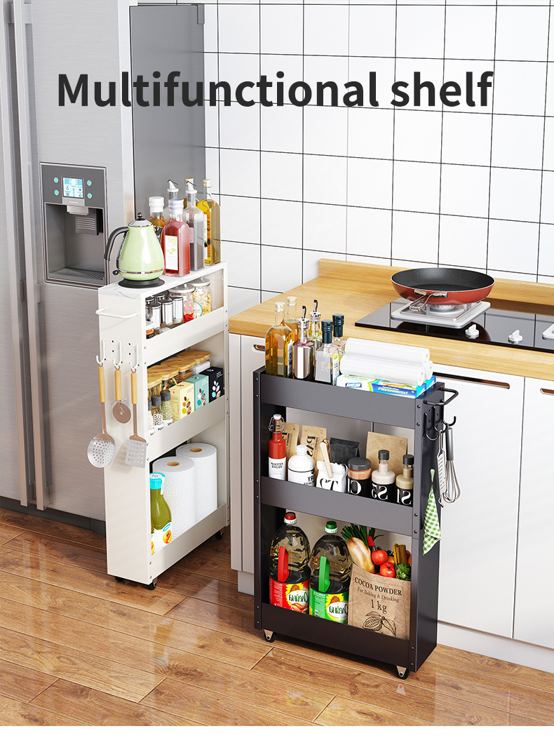 틈새 수납 선반 주방 풀 아웃 수납 선반 범용 휠 다층 수납 좁은 틈새 캐비닛 욕실 수납 선반