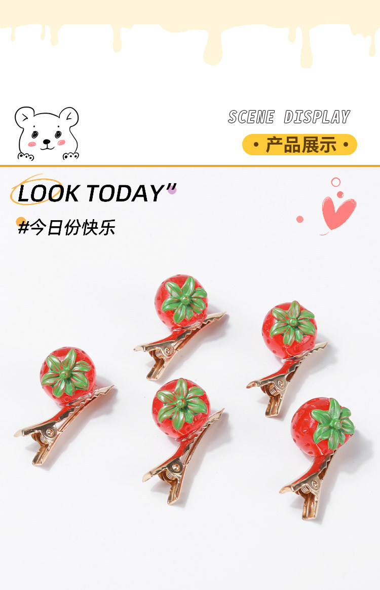 달콤한 귀여운 딸기 머리핀 어린이 사이드 클립 모자 여성용 2023 새로운 이마 앞머리 머리핀 헤어 액세서리스토어 가기