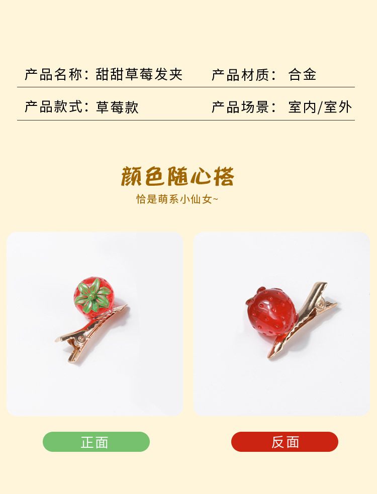 甜美可爱草莓发夹儿童侧边夹子头饰女2023年新款前额刘海发卡发饰