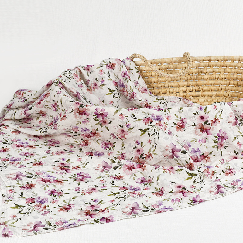 • 수채화 꽃 대나무 면 더블 레이어 원사