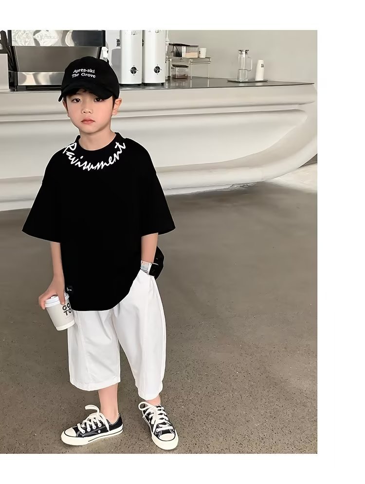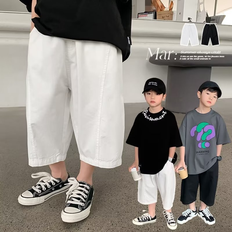 CUHK 어린이 2023 새로운 소년 캐주얼 반바지 여름 잘 생긴 얇은 캐주얼 자른 바지 소년 서양 패션