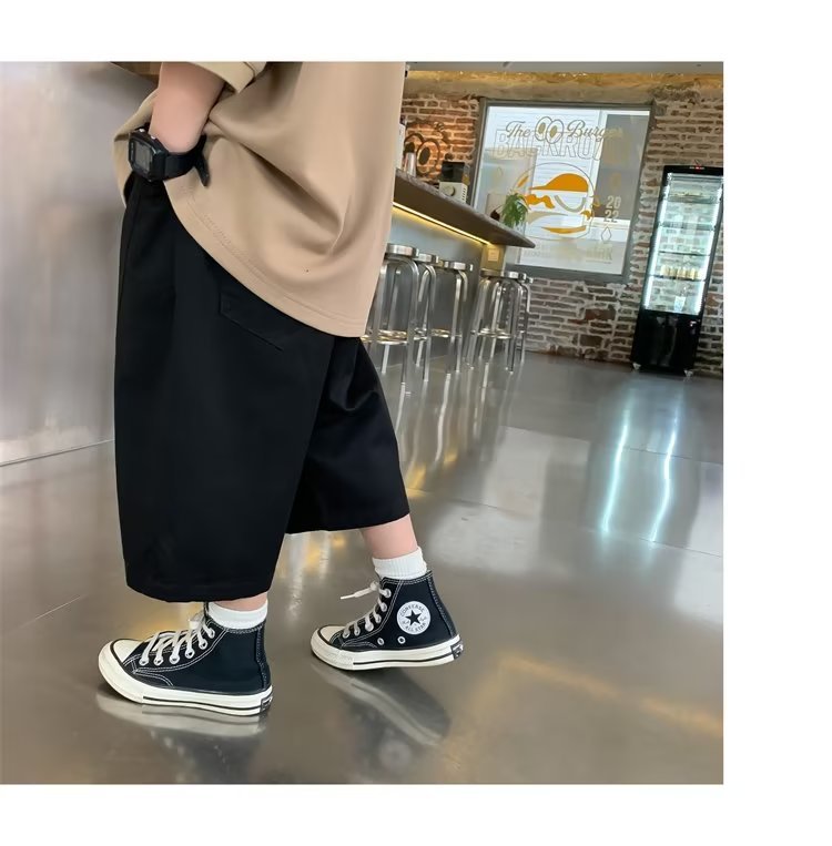 CUHK 어린이 2023 새로운 소년 캐주얼 반바지 여름 잘 생긴 얇은 캐주얼 자른 바지 소년 서양 패션스토어 가기