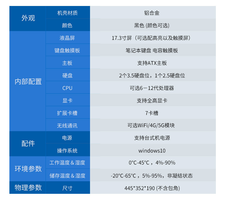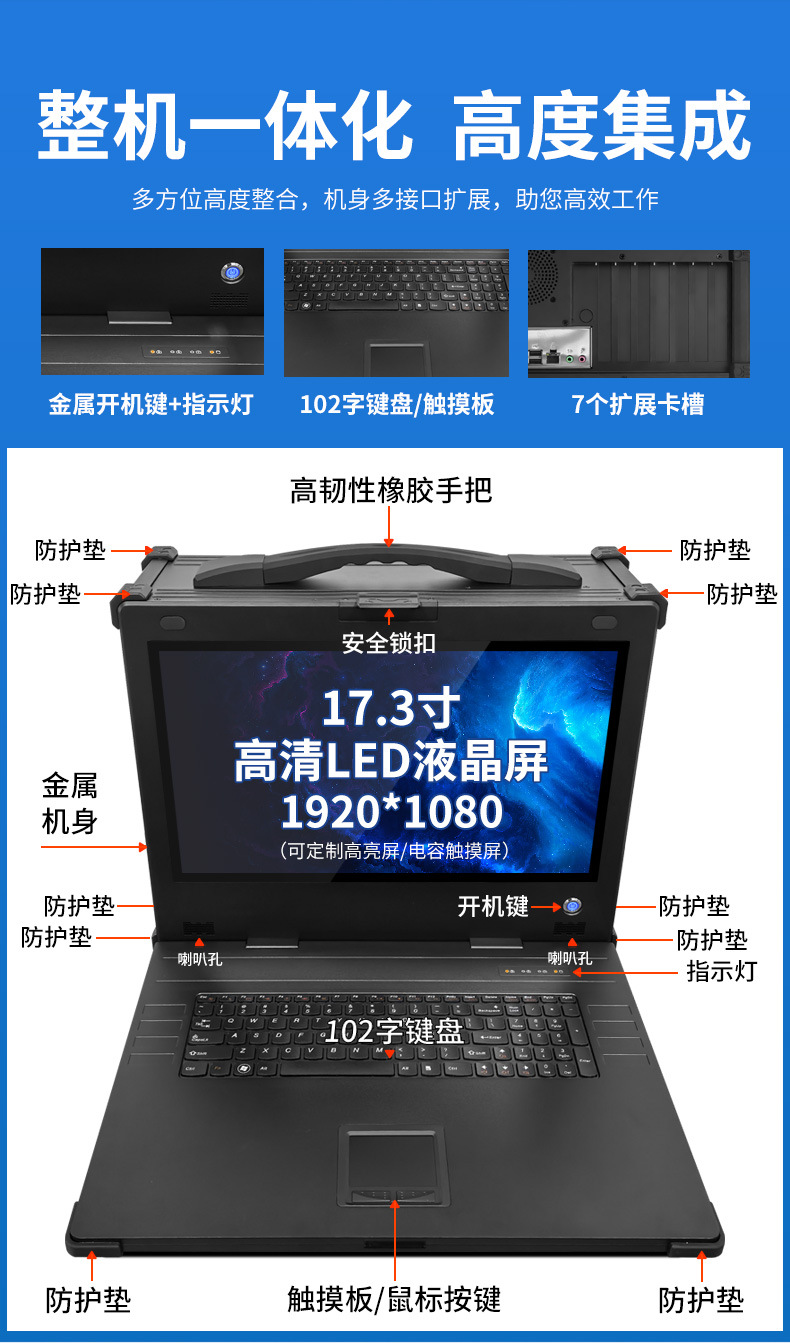 17.3인치 하향식 강화형 휴대용 일체형 3중 보호 노트북 워크스테이션 GPU 서버 호스트 산업용 제어 장치