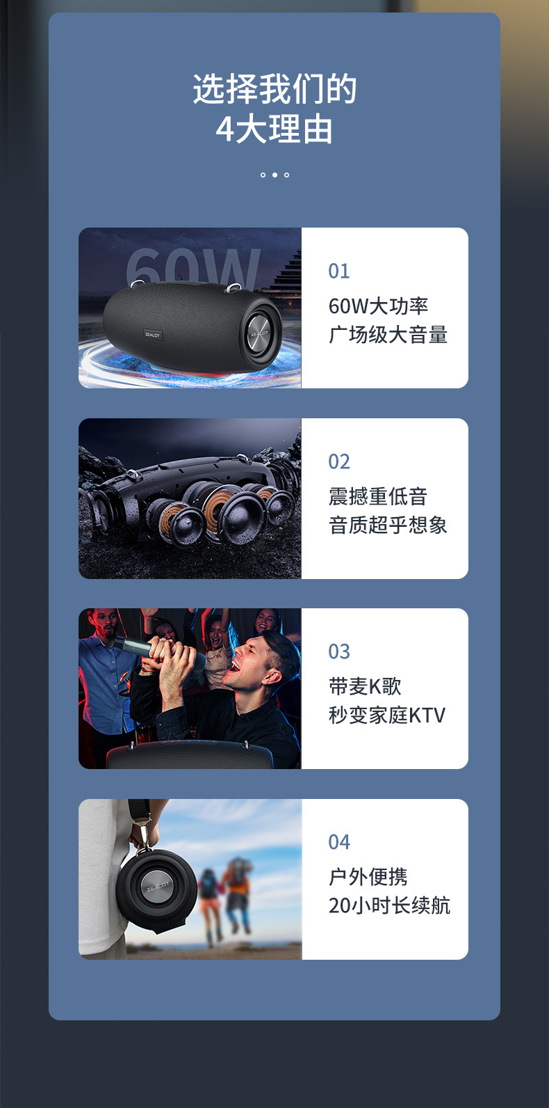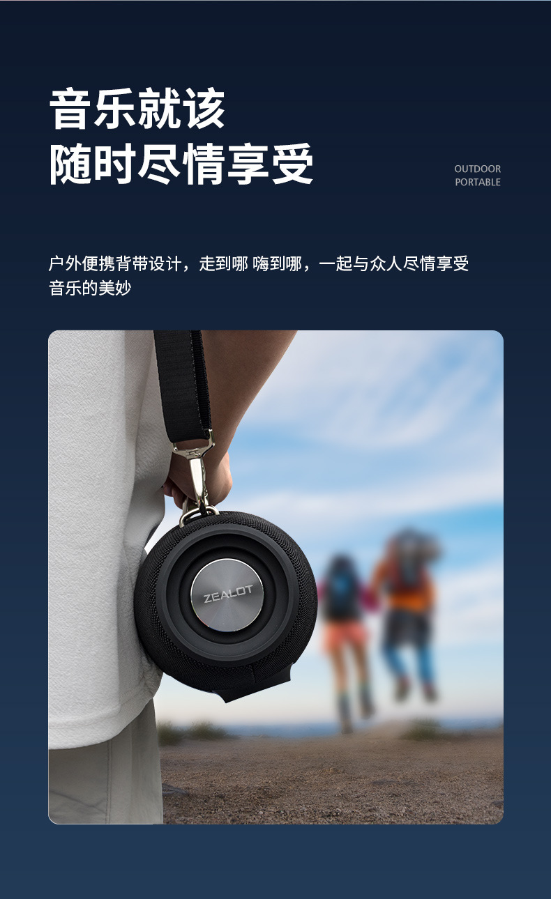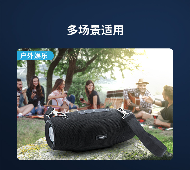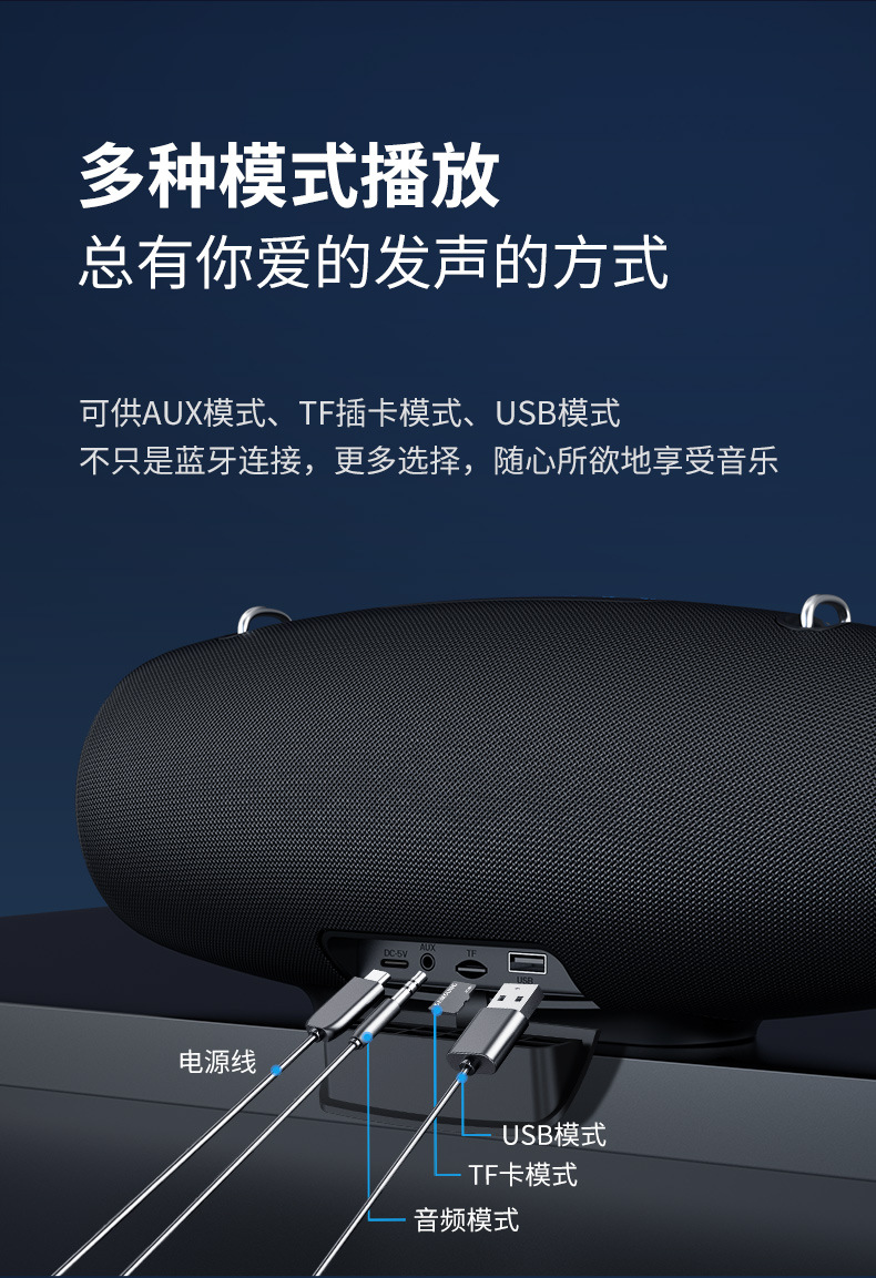 蓝牙+插TF卡+移动电源+外接输入+语音通话+户外便携背带