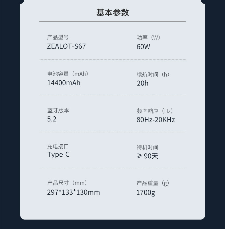 产品型号:S67蓝牙音箱