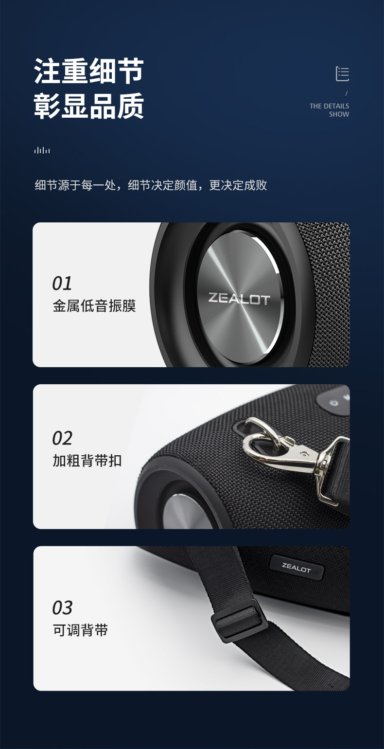 产品配件:音箱+背带+充电线+音频线+说明书