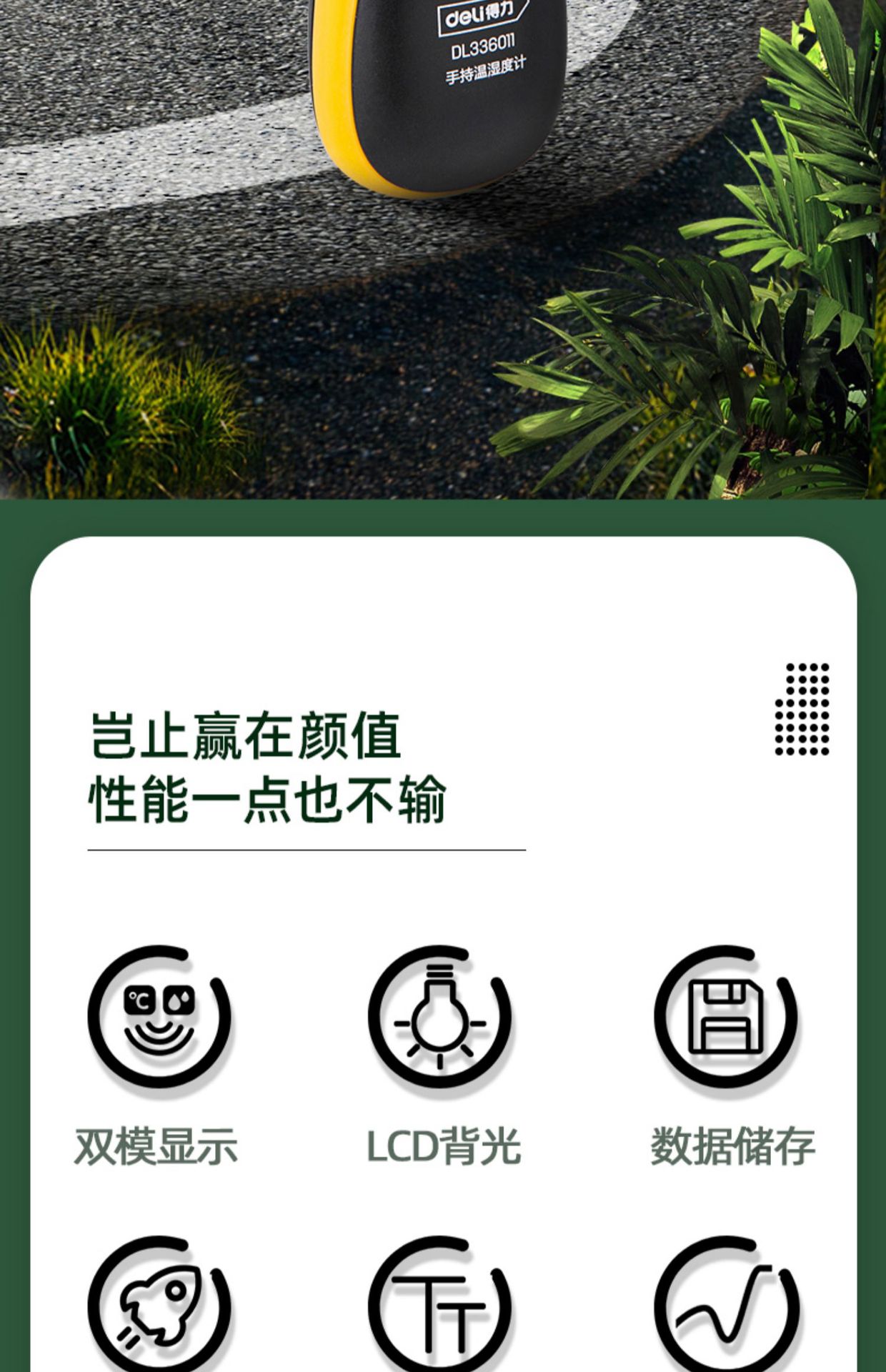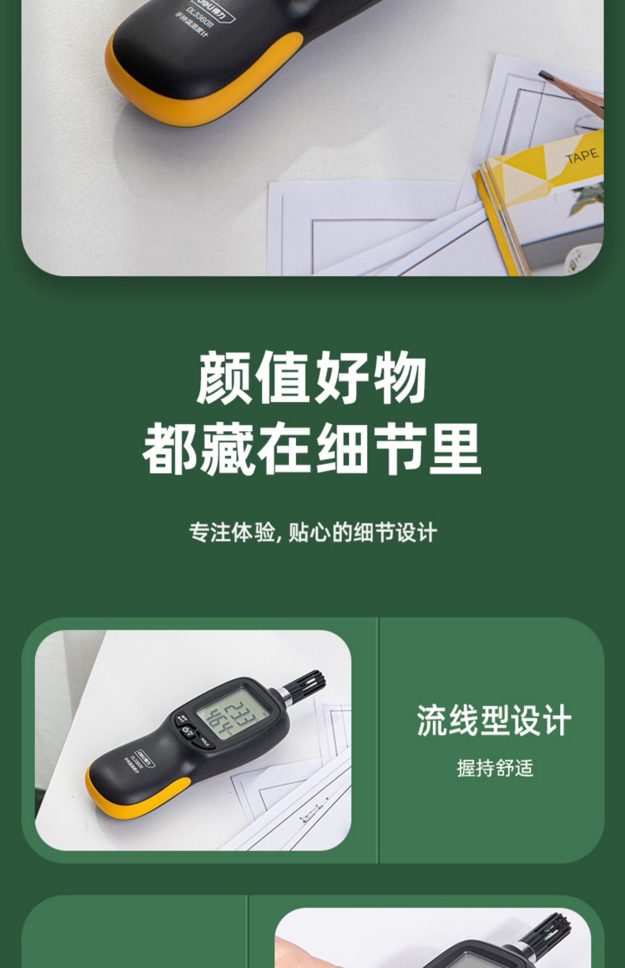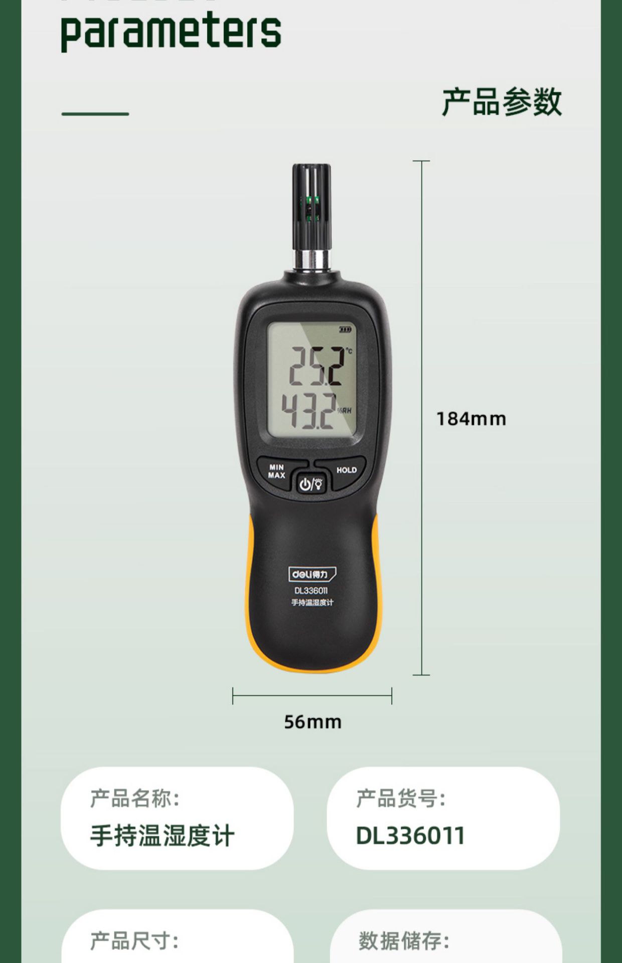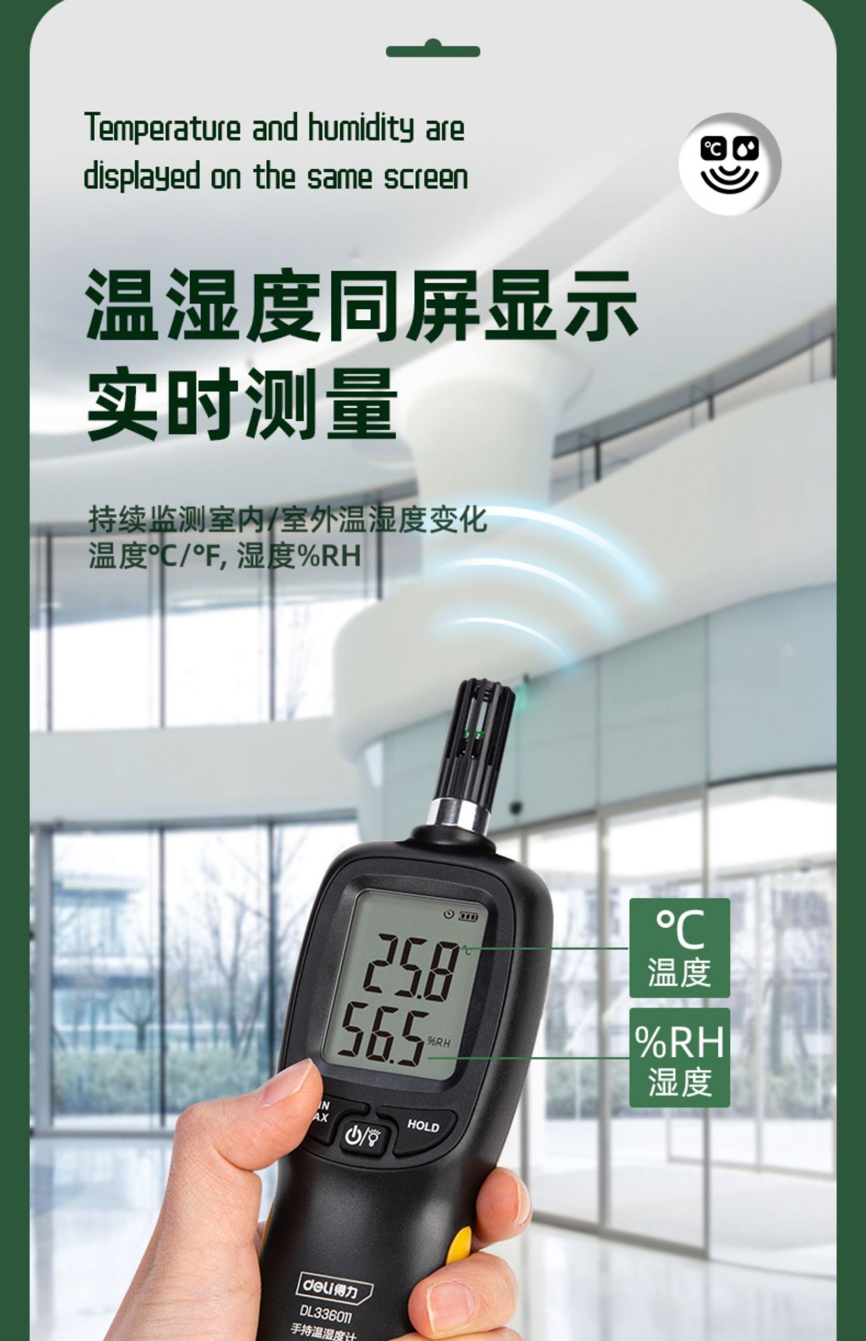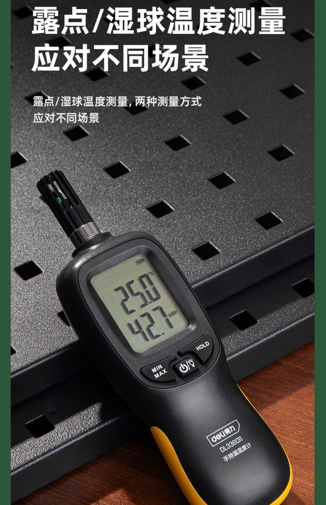 델리 툴 디지털 디스플레이 온도 습도 측정기 산업용 휴대용 고정밀 휴대용 온도계 DL336011스토어 가기