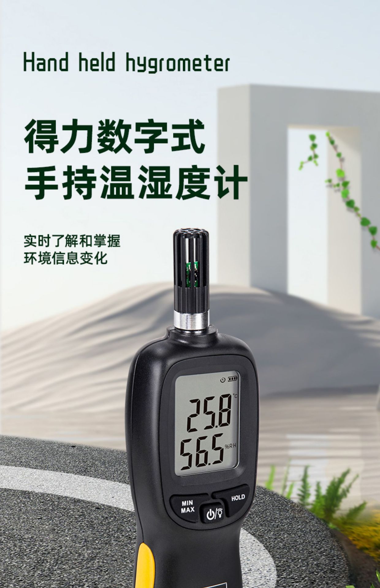 델리 툴 디지털 디스플레이 온도 습도 측정기 산업용 휴대용 고정밀 휴대용 온도계 DL336011