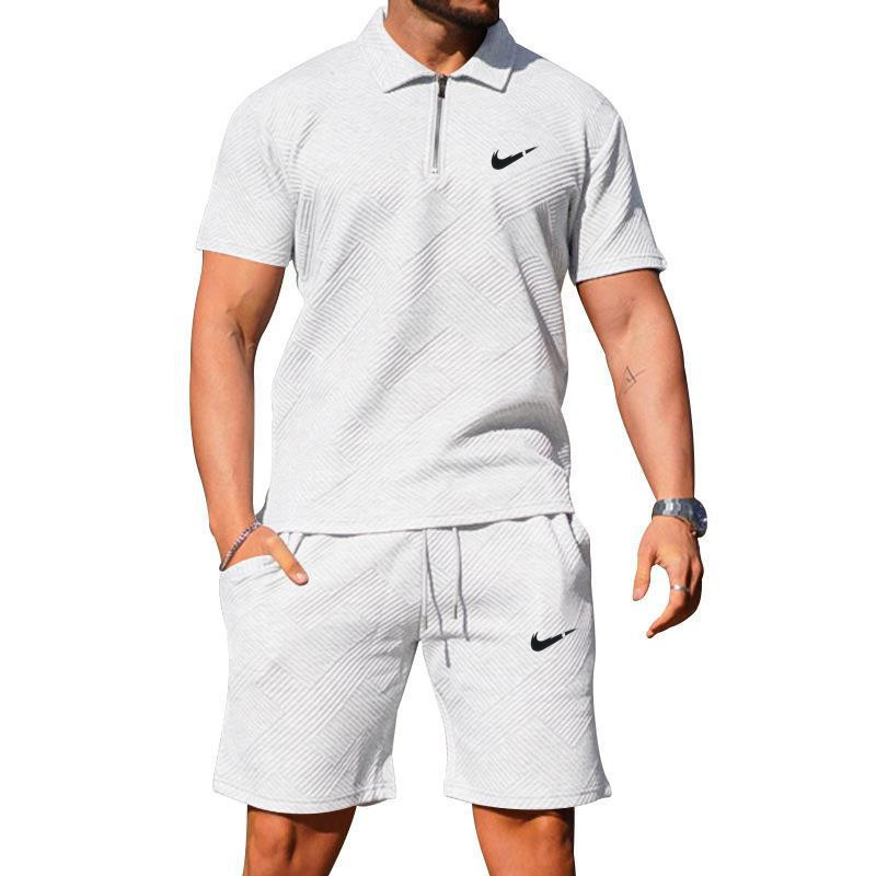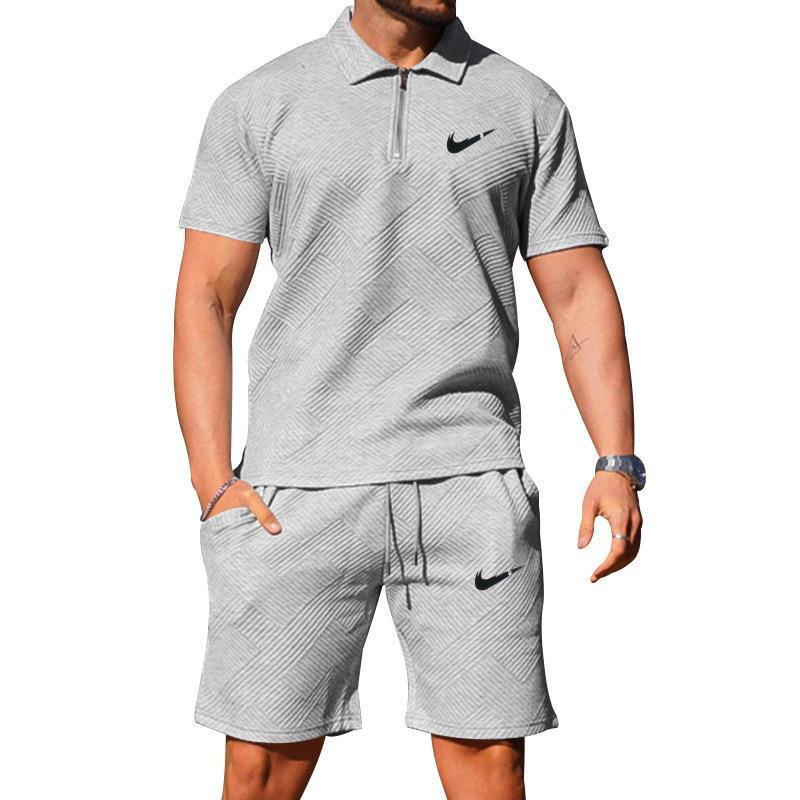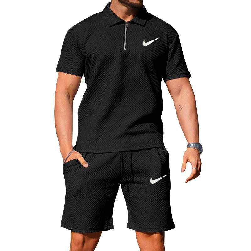 국경 간 대외 무역 남자 폴로 셔츠 남자 캐주얼 반팔 엘 티셔츠 질감 반바지 폴로 셔츠 투피스 세트