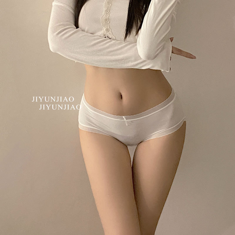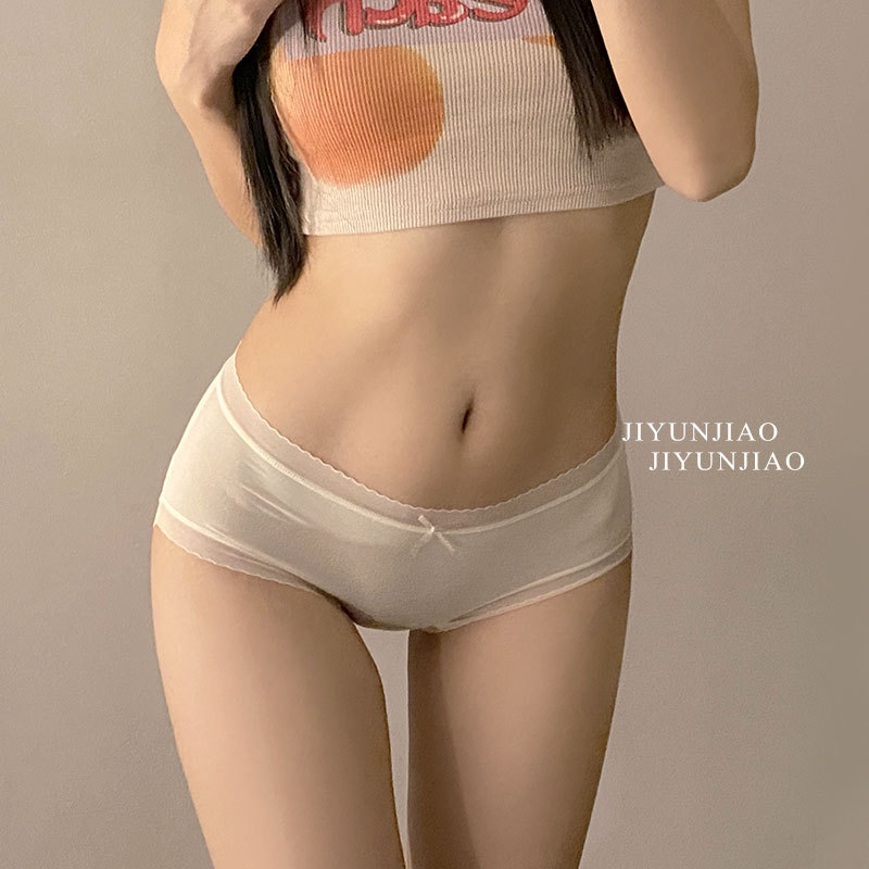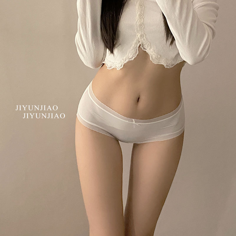 일본식 얇은 여아 속옷 여성용 미드 웨이스트 레이스 엣지 추적 할 수없는 단순한 달콤한 통기성 아이스 실크 속옷 여성용스토어 가기