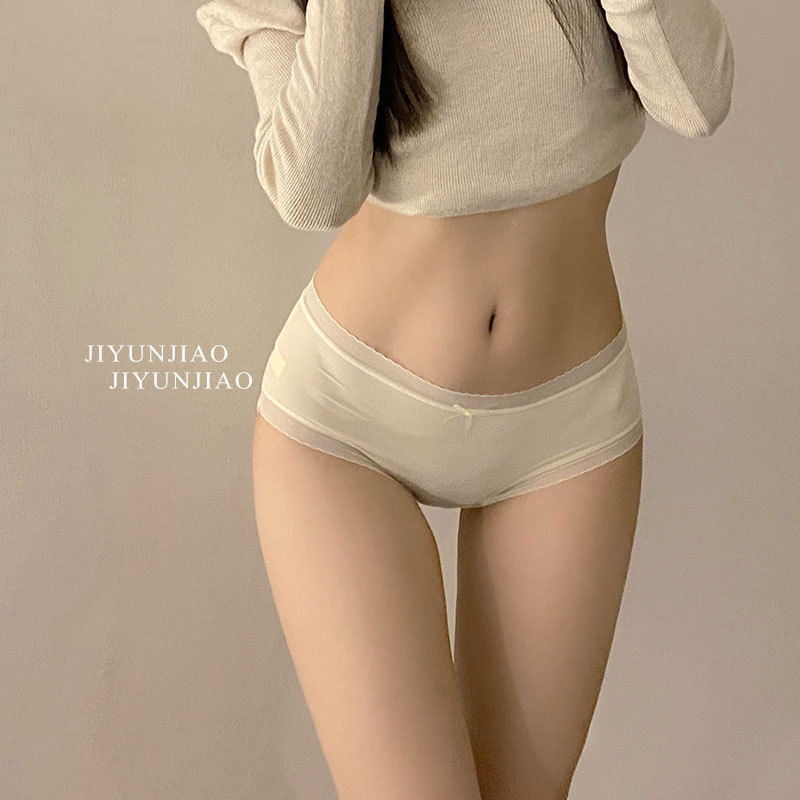 일본식 얇은 여아 속옷 여성용 미드 웨이스트 레이스 엣지 추적 할 수없는 단순한 달콤한 통기성 아이스 실크 속옷 여성용