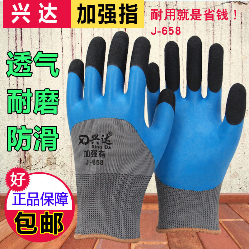 Xingda J-658 강화 손가락 라텍스 폼 장갑 노동 보호 디핑 내마모성 통기성 부드러운 작업 노동 보호스토어 가기
