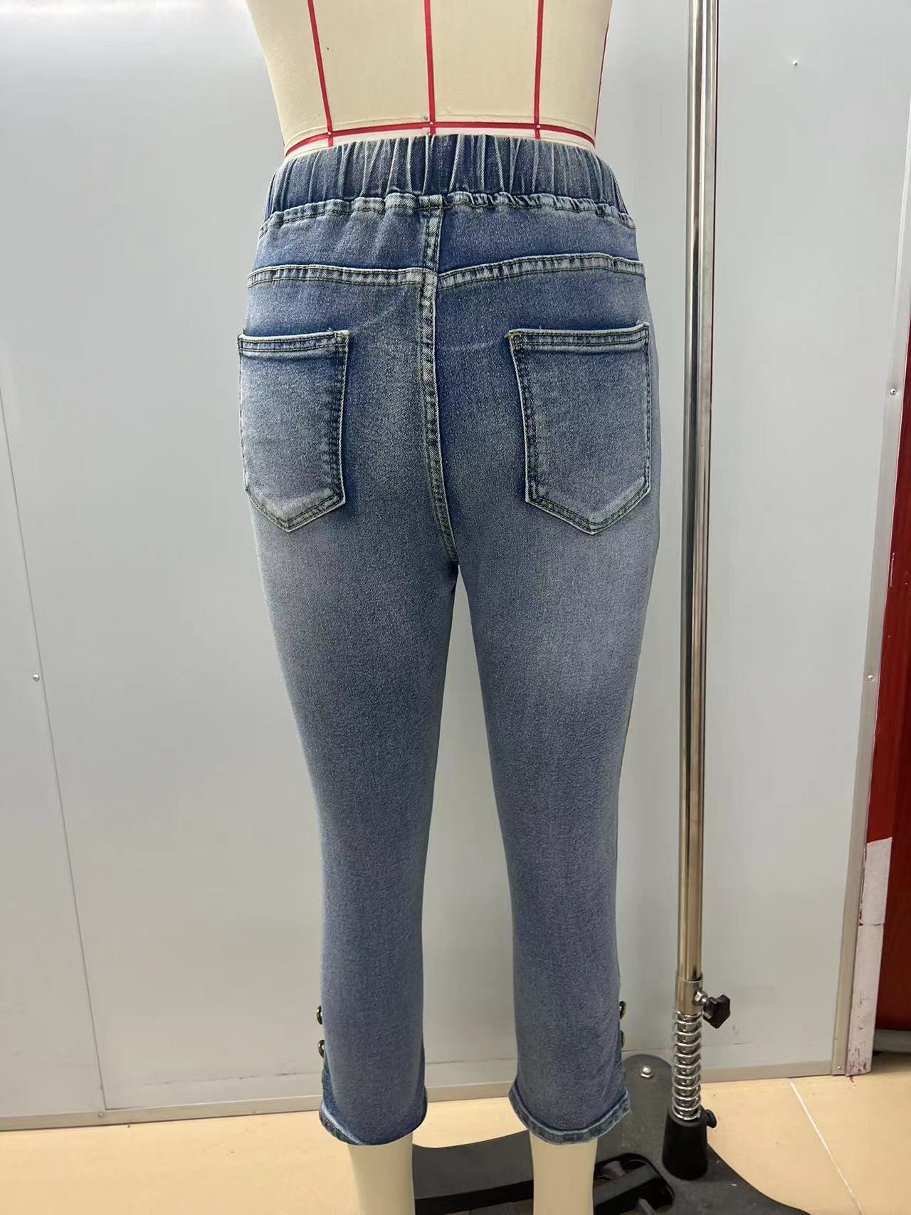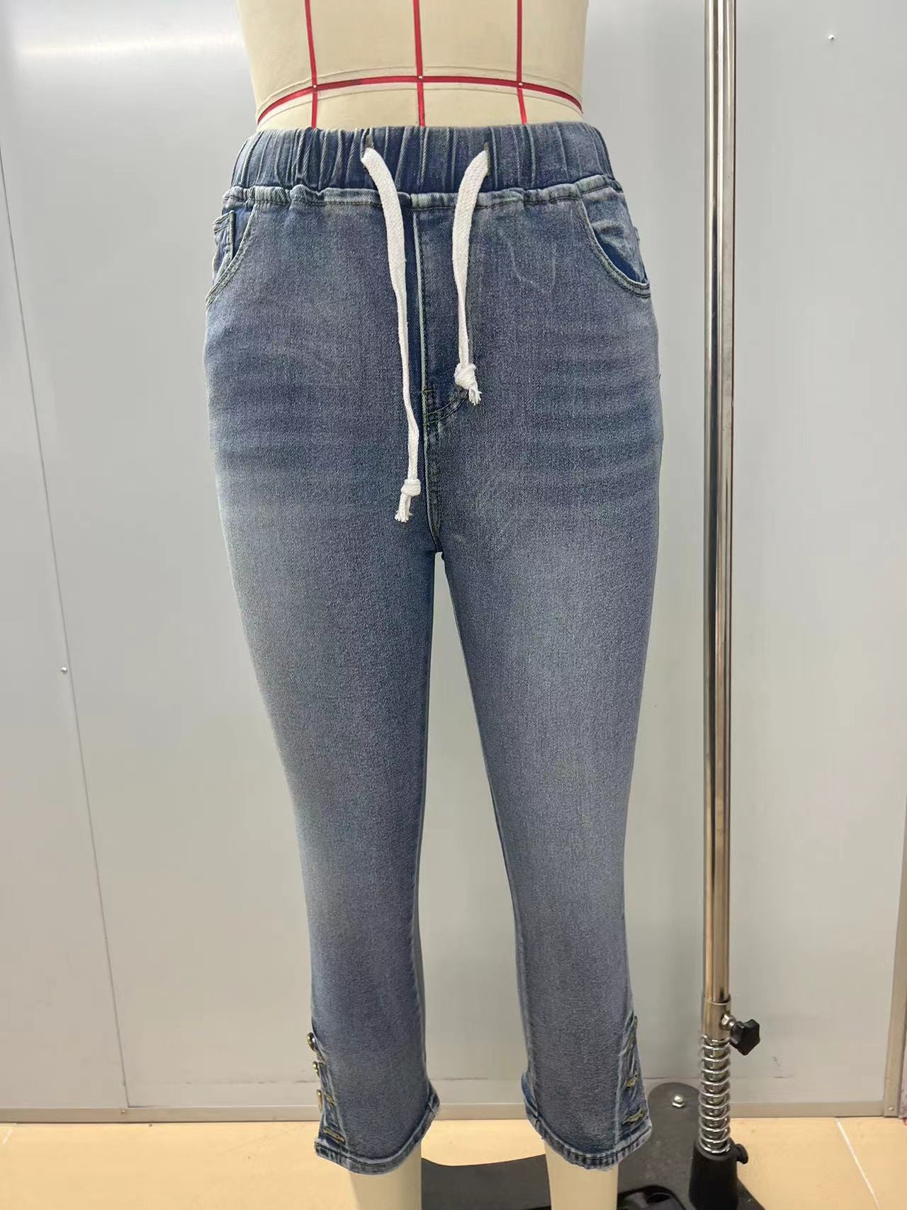 크로스 보더 아마존 독립 역 유럽과 미국 여성 청바지 탄성 허리 레이스 업 탄성 청바지 여성용 핫 팬츠스토어 가기