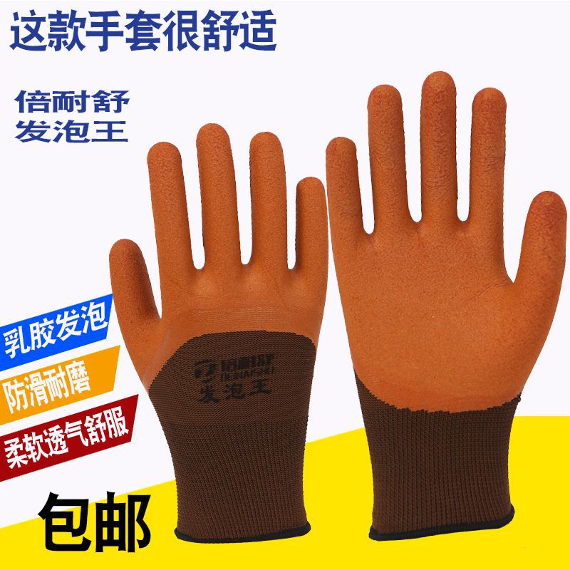 Beilieshu 폼 킹 라텍스 강화 손가락 담근 통기성 주름 보호 작업 노동 보호 내마모성 미끄럼 방지 장갑스토어 가기