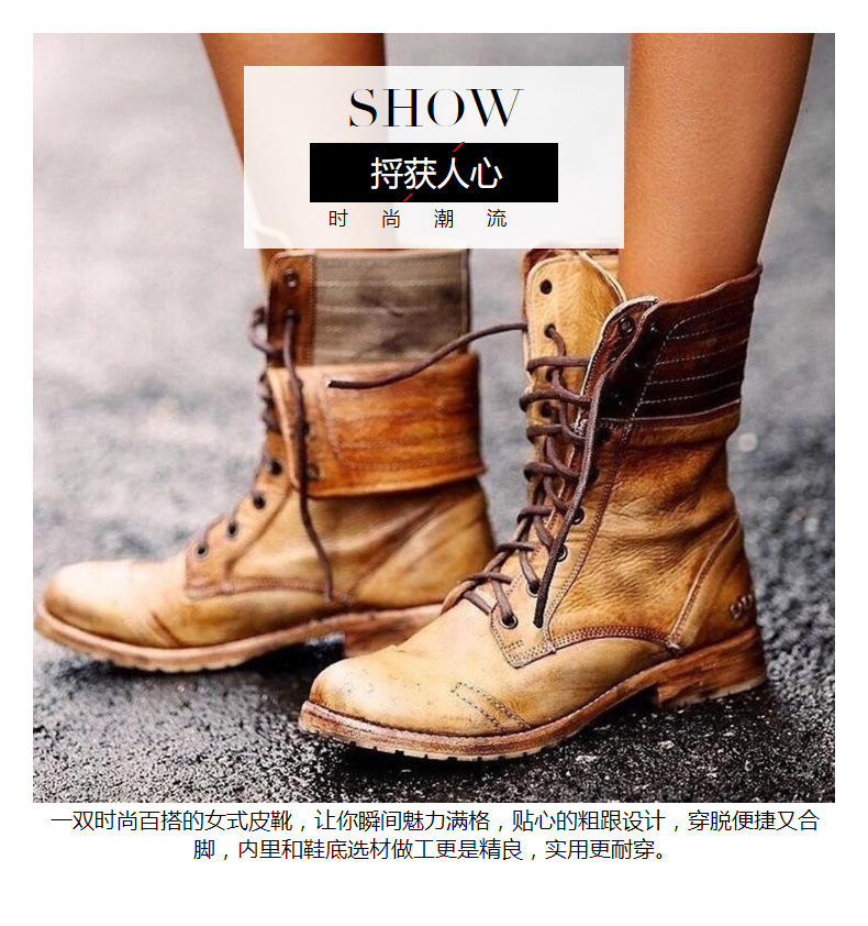Aliexpress 레트로 여성 가죽 부츠 앞 레이스 업 나이트 부츠 마틴 부츠 플랫 외국 무역 대형스토어 가기