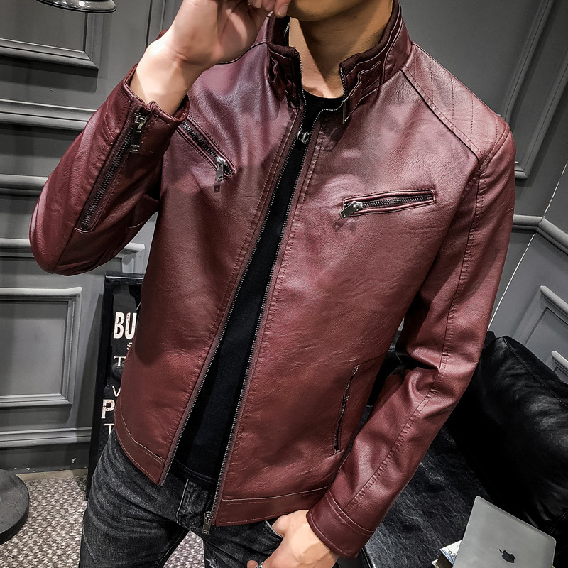 크로스 보더 아마존 남성용 pu 가죽 자켓 남성용 트렌디 십대 스탠드 칼라 펑크 남성용 오토바이 가죽 자켓스토어 가기
