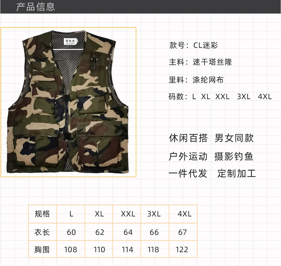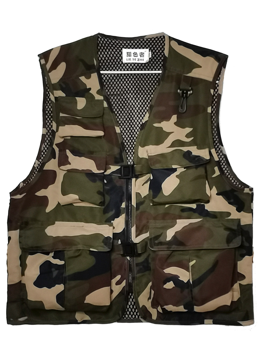 야외 등산 위장 멀티 포켓 작업복 조끼 남성용 낚시 사진 전술 조끼