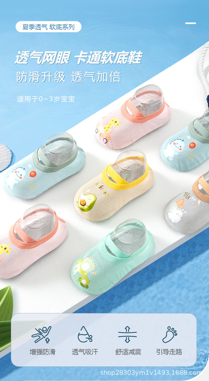 아기 유아 신발 어린이 여름 얇은 바닥 신발 유아 메쉬 실내 신발 부드러운 밑창 미끄럼 방지 바닥 양말
