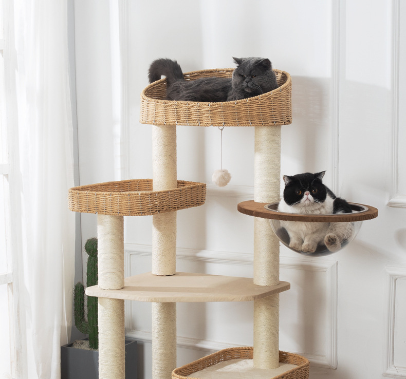 단단한 나무 고양이 등반 랙 고양이 둥지 고양이 나무 통합 공간 캡슐 고양이 스크래치 보드 짠 둥지 등나무 짠 사이잘삼 고양이 랙 머펫 메인