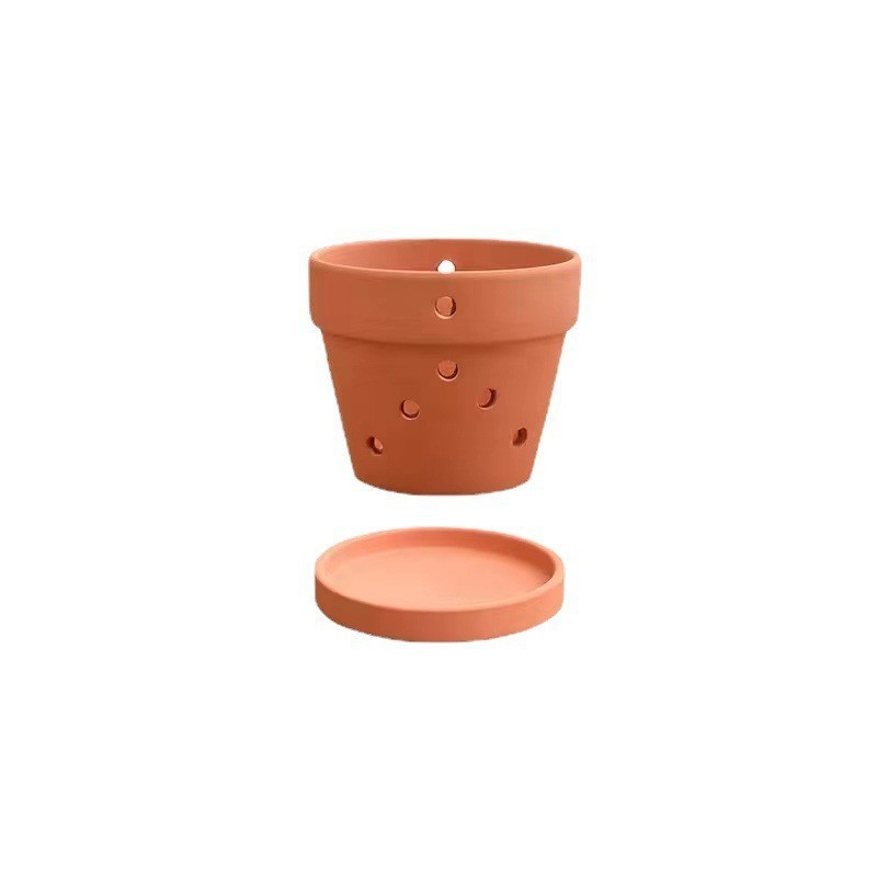 사이드 홀 레드 도자기 화분 국제 냄비 무지 연소 세라믹 도자기 냄비 화분 난초 다육 꽃 냄비 점토 화분 도매스토어 가기
