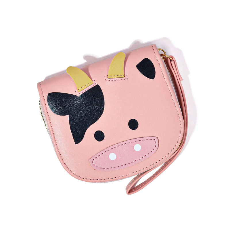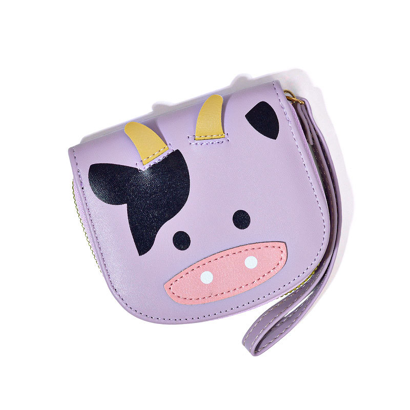 귀여운 만화 지갑 암소 동전 클립 학생 가방 pu 다기능 대용량 대외 무역 재고 돈 가방
