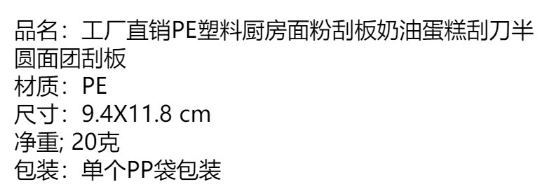 공장 직매 PE 플라스틱 주방 밀가루 스크레이퍼 크림 케이크 스크레이퍼 반원형 반죽 스크레이퍼